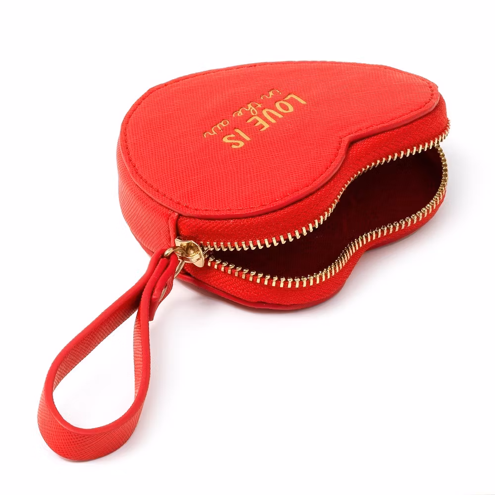 Hjärtformad portmonnä med dragkedje med texten "Love is in the air". Passar även bra till att förvara läppstift och mindre smycken mm i.Stl, exkl rem: 10x8