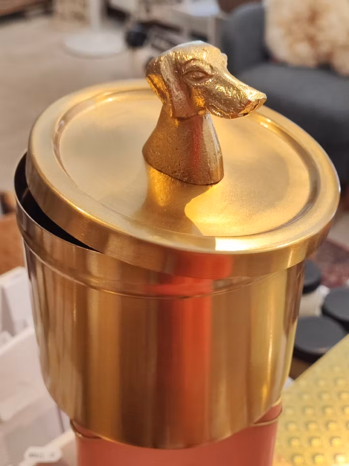 Glasburk med svart lock och dekorativ taxfigur – perfekt för förvaring av hundgodis. En stilren och charmig detalj för hundälskarens hem.