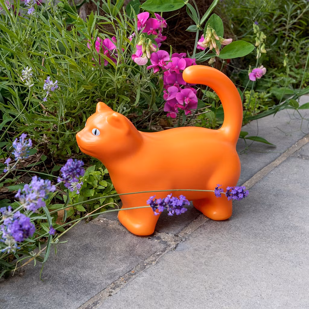 Söt liten vattenkanna i form av en orange katt. Rymmer 1,5 liten.