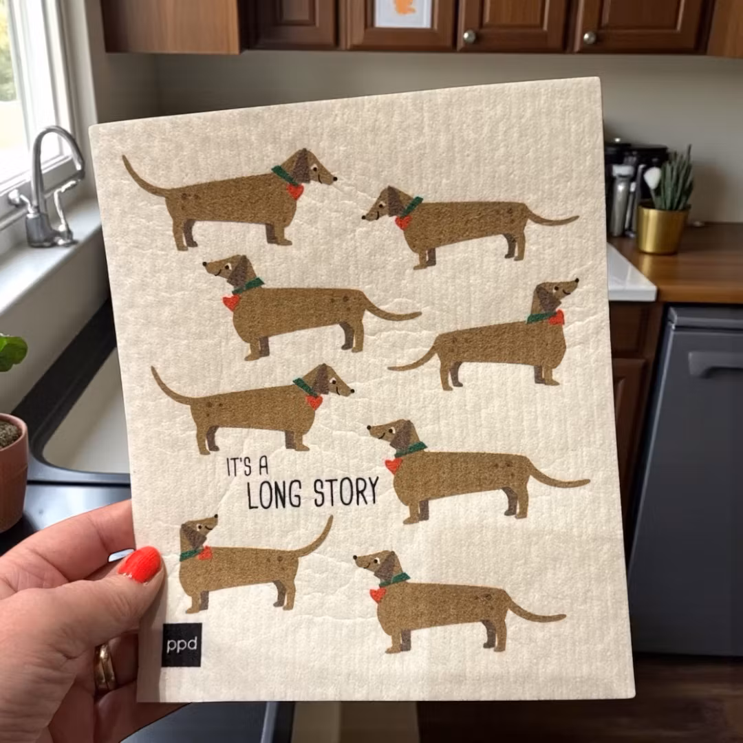Ge ditt kök en både praktisk och lekfull detalj med denna disktrasa med taxar – en hållbar klassiker som kombinerar funktionalitet med miljötänk. Den är tillverkad av 70% cellulosa och 30% bomull, helt fri från plast och därmed ett klimatsmart val för vardagen. När trasan gjort sitt kan du lägga den på komposten och låta den återgå till naturen, vilket gör den till ett cirkulärt alternativ för ditt hem. Motivet trycks i Sölvesborg med vattenbaserad, miljövänlig färg som är skonsam både för dig och för miljön. Disktrasan är tvättäkta i 90° och tål att tvättas i både tvättmaskin och diskmaskin, och du kan även koka den för maximal hygien, vilket ger den lång livslängd och gör att du kan använda den om och om igen. Med sitt charmiga taxmotiv blir den inte bara ett effektivt redskap för disk och rengöring av köksytor, utan också en rolig detalj som piggar upp vardagen. Storleken är 17 x 20 cm – perfekt för både små och stora sysslor i köket.