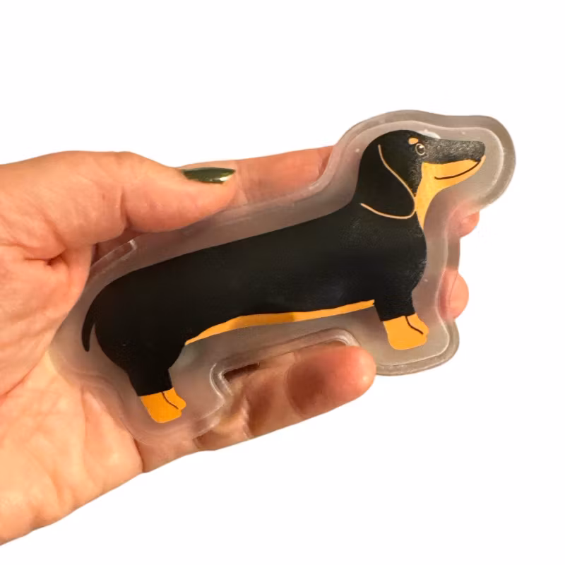 Håll dig varm med denna fickvärmare formad som en tax. Perfekt för kalla dagar, lätt att&n