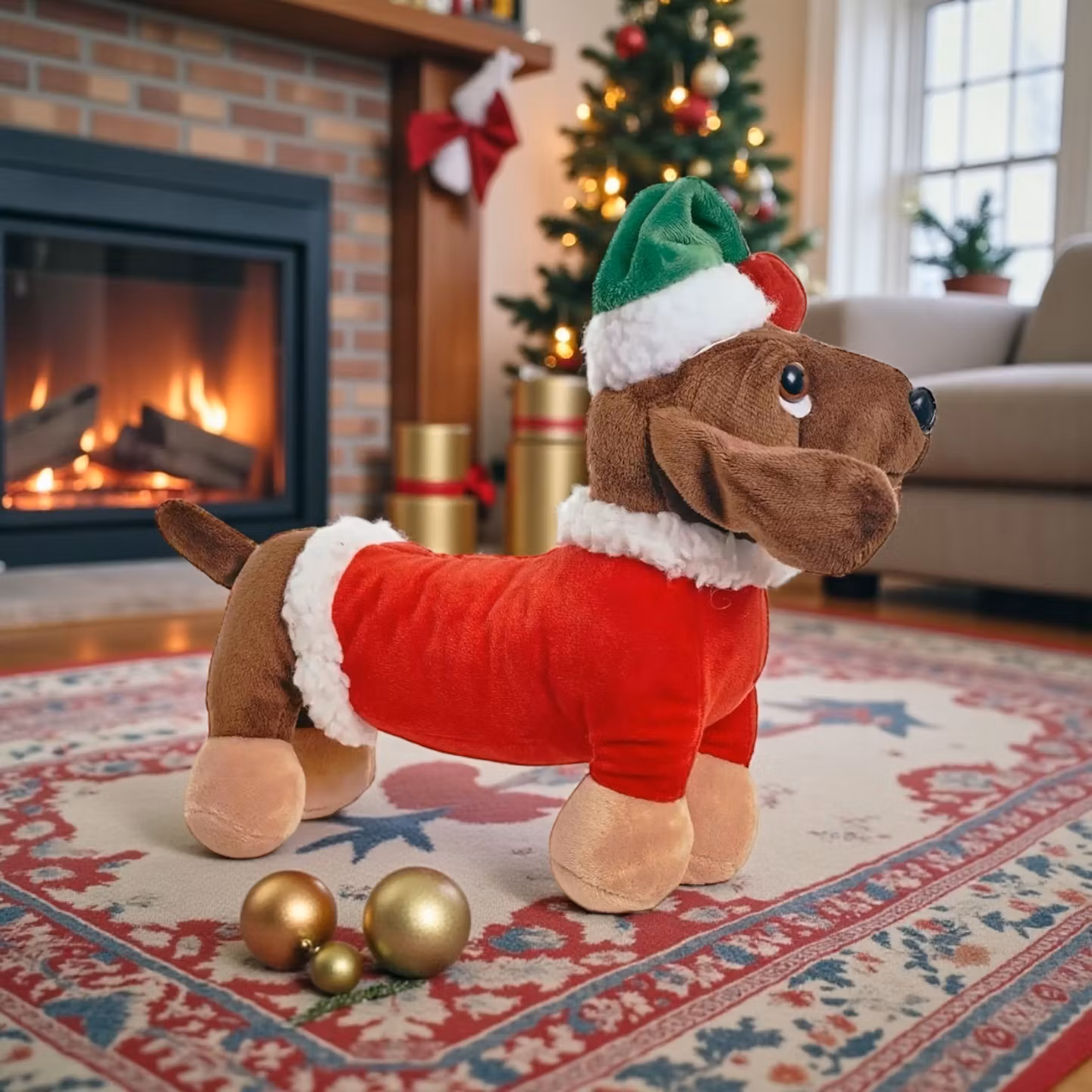 Denna underbara mjuka tax är 30 cm lång och klädd i en festlig röd tomtedräkt tillsammans med en grön tomteluva som ger en härlig kontrast mot den bruna pälsen. Den är tillverkad i mjukt och gosigt material som gör den lika härlig att krama som att använda som juldekoration. Placera den i soffan, på hyllan eller under granen för att skapa en varm och stämningsfull atmosfär. Den realistiska designen och de fina detaljerna gör den till en uppskattad julklapp för både barn och vuxna. Detta gosedjur är inte bara en lekfull vän utan också en unik juldekoration som förhöjer känslan av högtid och gemenskap i hemmet.