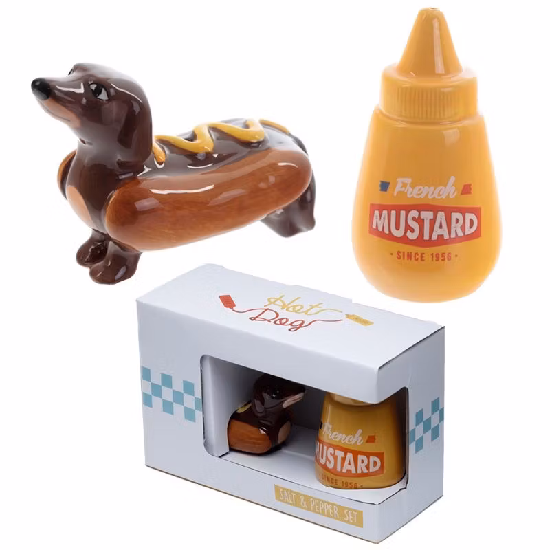 Lägg till en rolig och originell detalj till ditt kök med dessa salt- och pepparkar i form av en tax i ett korvbröd och en senapsflaska.