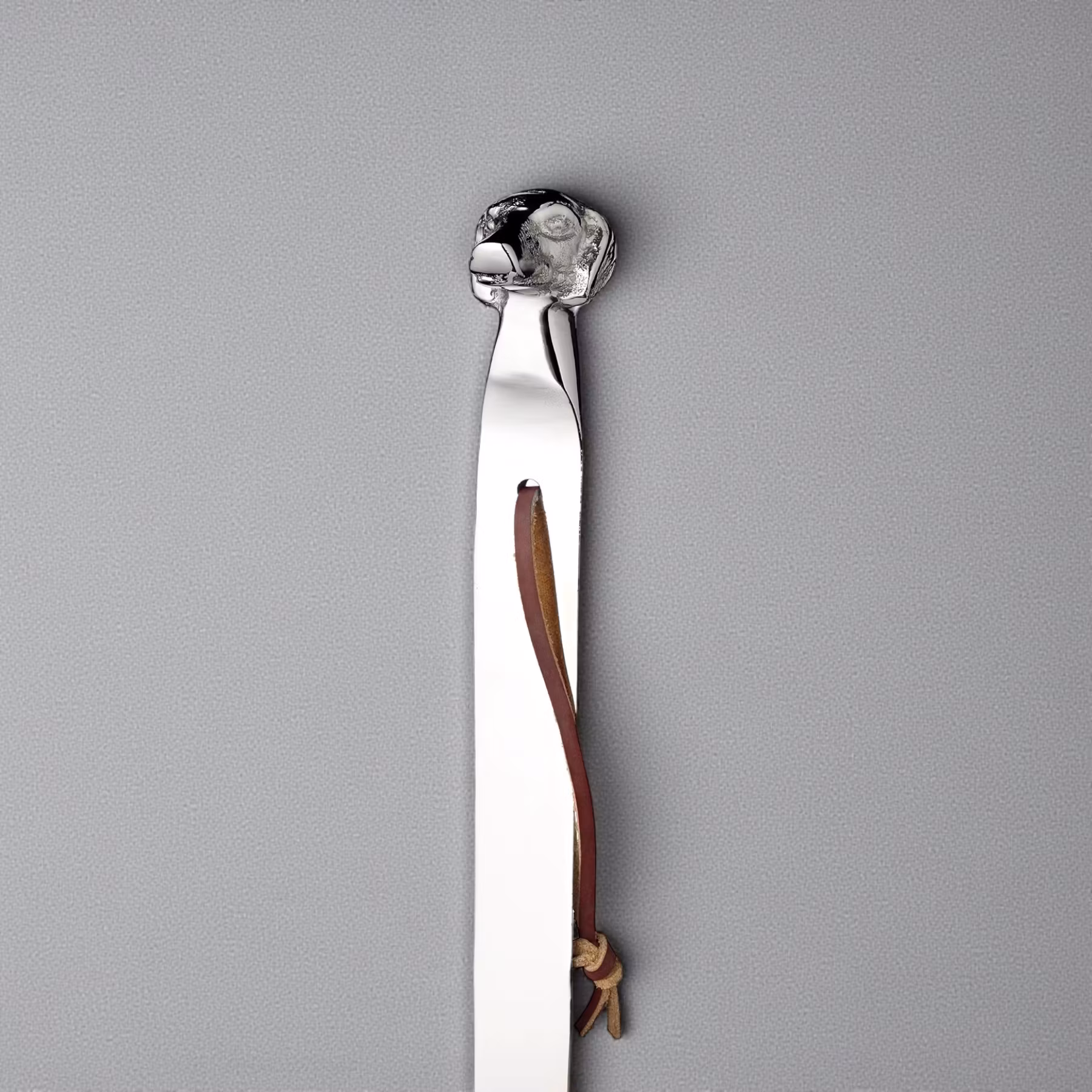 Ge din vardag en touch av både funktion och charm med detta exklusiva skohorn i metall. Den klassiska designen pryds av ett detaljerat taxhuvud högst upp, vilket gör det till en unik och personlig accessoar för hallen.