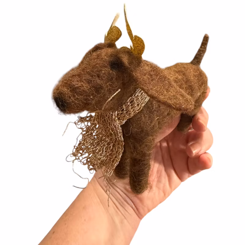 Tax i filt med renhorn och gnistrande halsduk. Lägg till en festlig touch med denna bedårande juldekoration.Stl: 12 x 3 x 8 cmPris: 129:-Material: filt, tyg