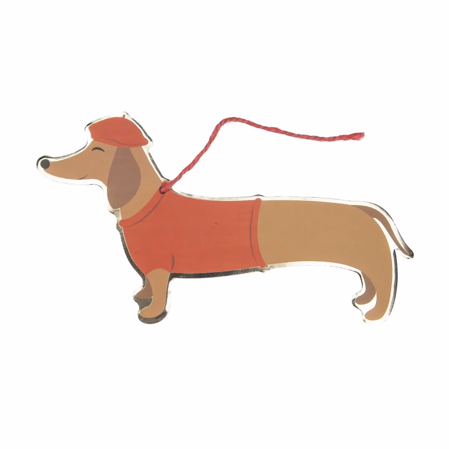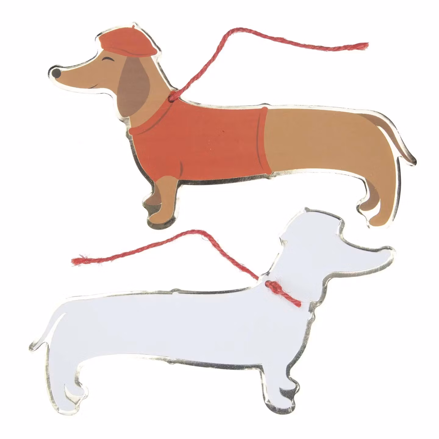 Stora söta paketkort i form av en tax med rött bomullssnöre i där du har plats att skriva på baksidan, 8 st per förpackning.