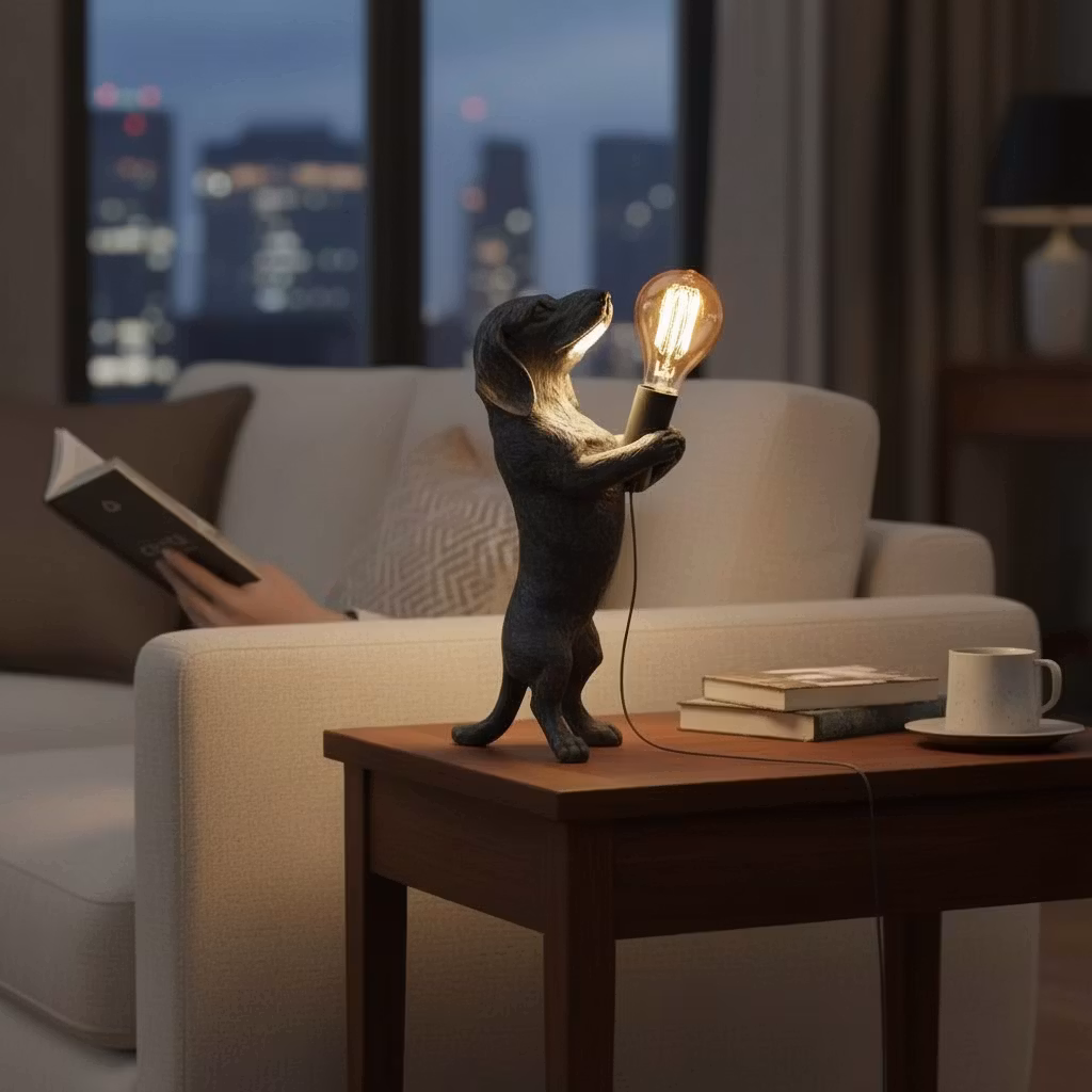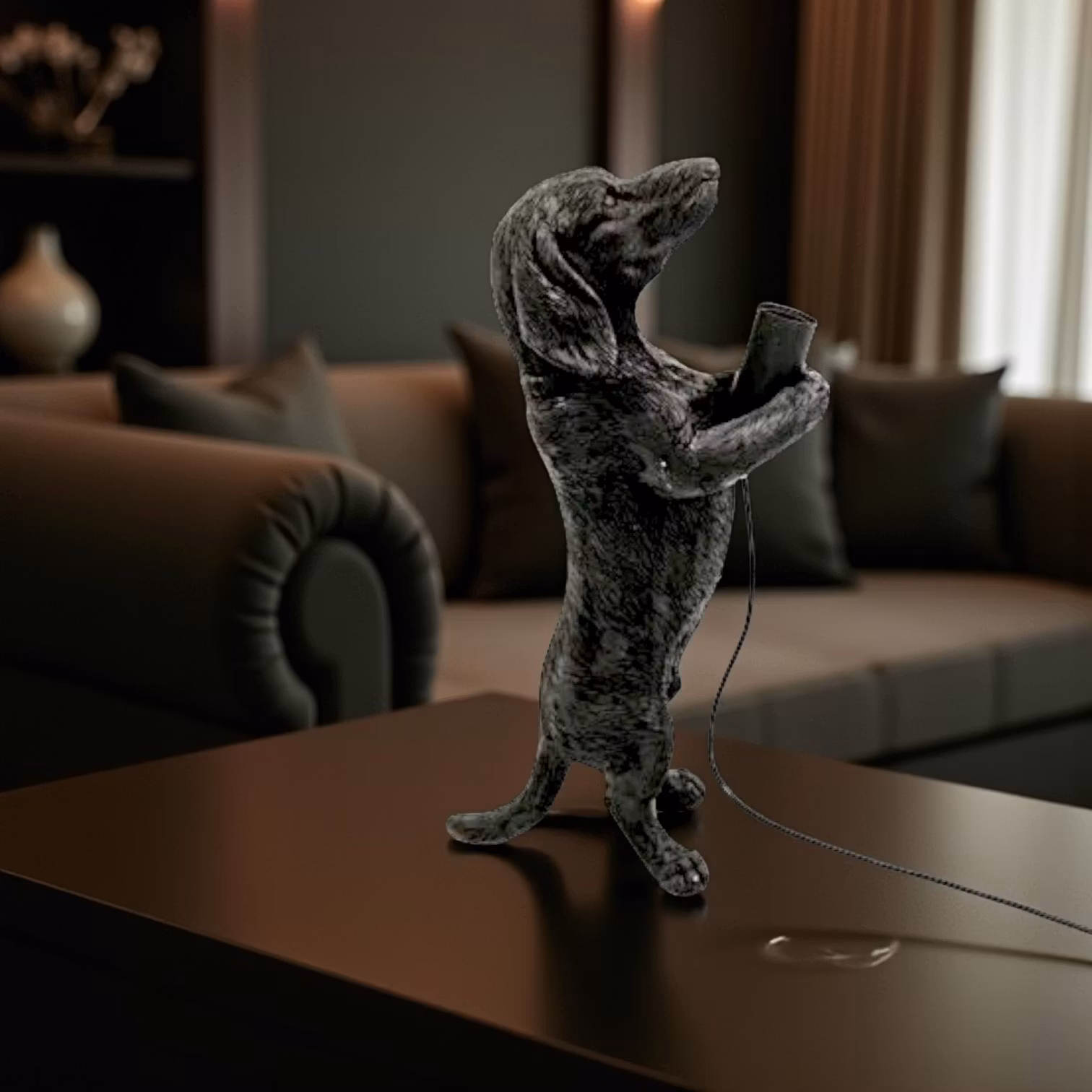 Lampan är 38 cm hög och passar med en standard glödlampa (ingår ej). Den är både en funktionell ljuskälla och ett konstnärligt inslag i inredningen. Ett måste för hundälskare och designentusiaster som vill ha något utöver det vanliga.