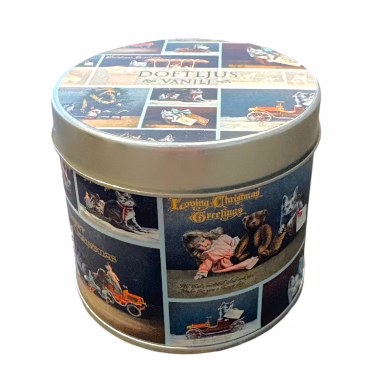 Förgyll ditt hem med ett doftljus i en charmig plåtburk med juliga katter och skapa en härlig och mysig atmosfär.