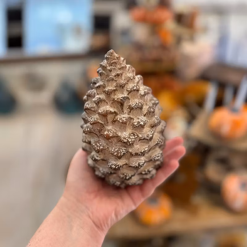 Stor kotte som står stadigt då den är helt platt i botten. Vackert målad med lite ljusare partier längts ut, en trevlig inredningsdetalj som passar hela hösten