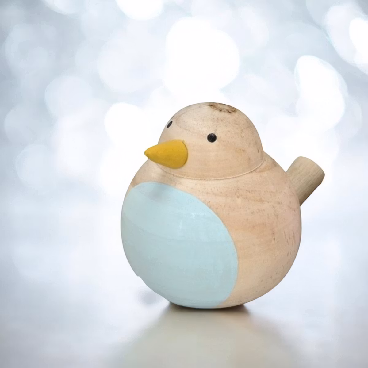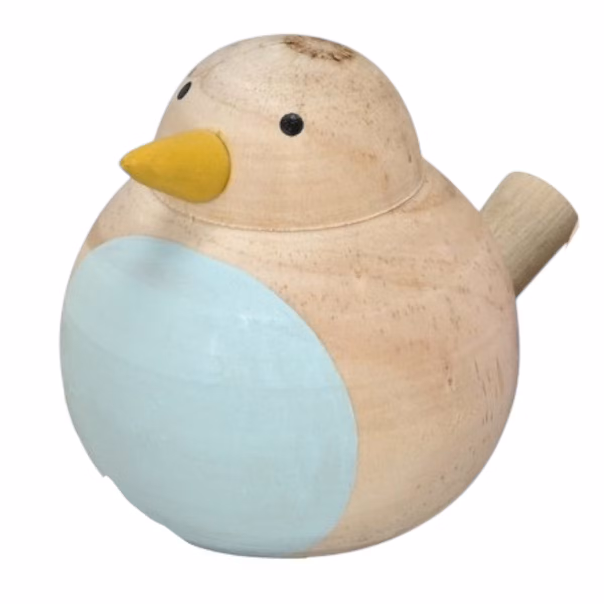 Söt liten fågel i tär med rundkropp och en rund målad ring på bröstet.Stl: 9 x 6 x 7 cmPris: 69:-Material: trä