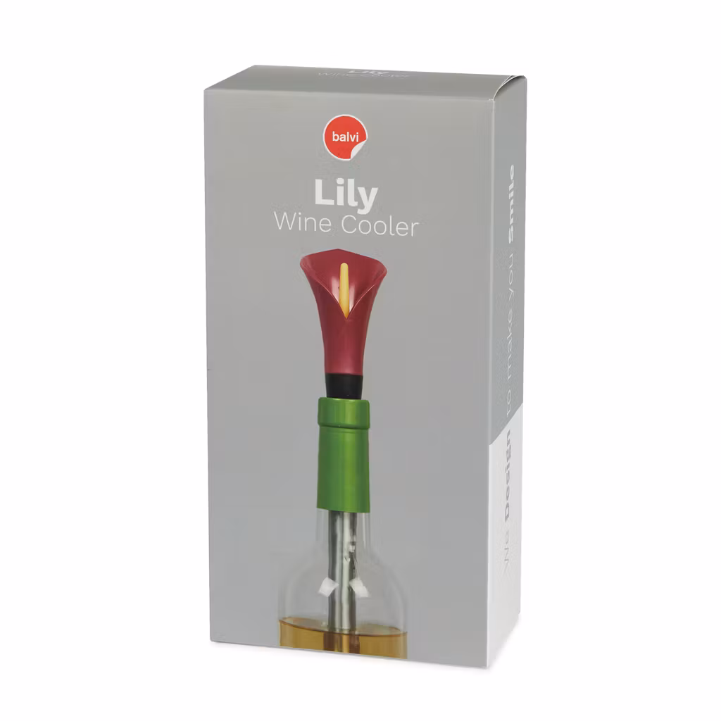 Vinkylare Lilja Djup Röd & Stål från Balvi är en smart och stilfull 3‑i‑1‑lösning som kombinerar kylstav, dekanterare och hällpip i ett enda elegant verktyg för vinälskare. Den droppfria kylstaven i rostfritt stål placeras i kyl eller frys i minst två timmar och håller sedan vinet perfekt tempererat direkt i flaskan, medan den integrerade dekanteraren syresätter vinet för att lyfta fram aromer och smak. Den dekorativa liljeformade pipen i slitstark ABS‑plast gör serveringen både enkel och estetisk, och den djupa granatröda färgen ger ett exklusivt uttryck som passar lika bra vid middagsbjudningar som vid festliga tillfällen. Vinkylare Lilja är en uppskattad present till vinentusiaster, blomälskare eller den som gillar smarta och oväntade köksaccessoarer.