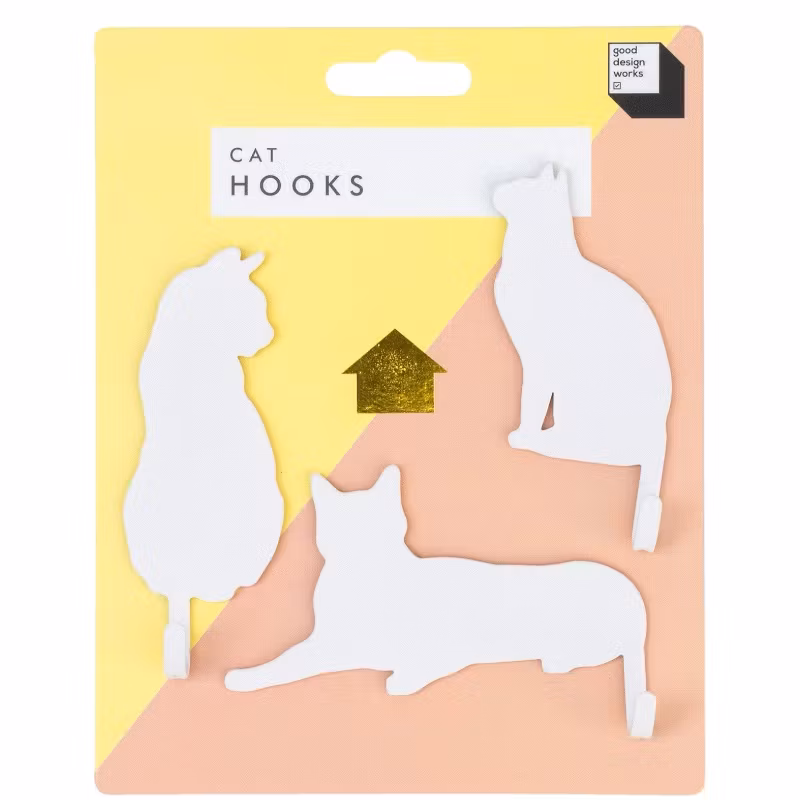 Dessa självhäftande väggkrokar i form av stilrena katter