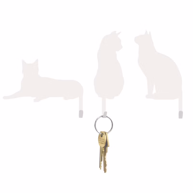 Självhäftande väggkrokar i form av katter med krokformad svans – 3-pack i målad metall. Perfekta för nycklar, handdukar mm.