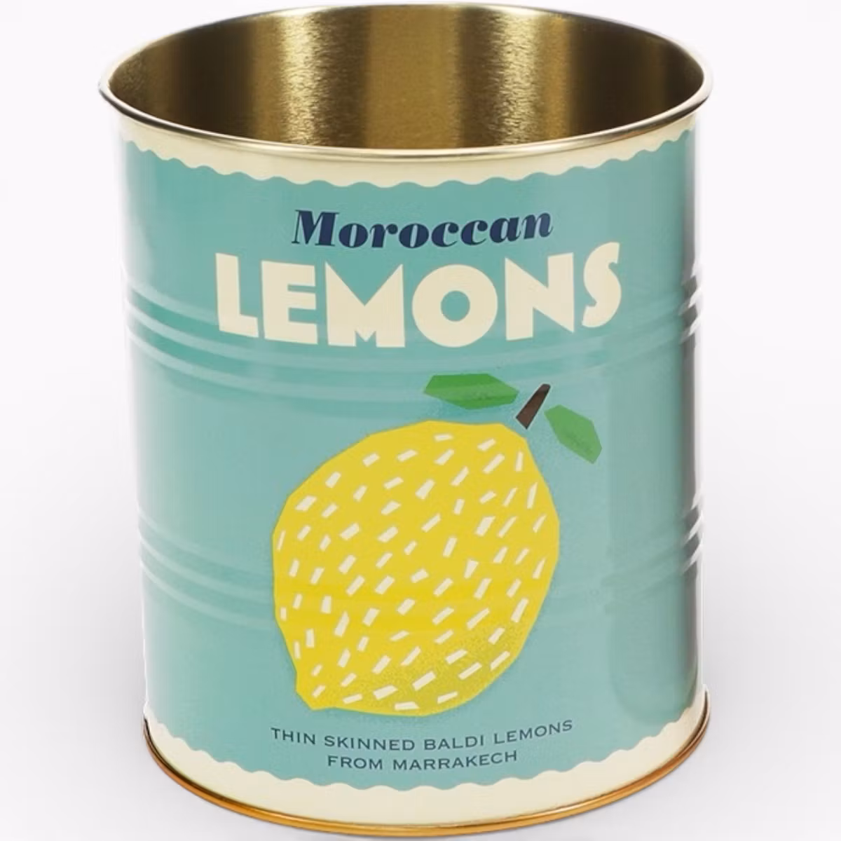 En underbart retroinspirerad metallburk från Rex London, dekorerad med ett friskt citronmotiv mot en ljusblå botten som ger en härlig, solig känsla till köket. Burken är formad som en klassisk konservburk och har en generös storlek som gör den perfekt som kruka, förvaring av köksredskap på diskbänken eller som en dekorativ detalj som både syns och gör nytta. Med sina 20 cm i diameter och 24 cm i höjd rymmer den gott om slevar, vispar, kryddväxter eller andra saker du vill ha nära till hands. En färgstark och praktisk burk som adderar både humor och funktion till hemmet.