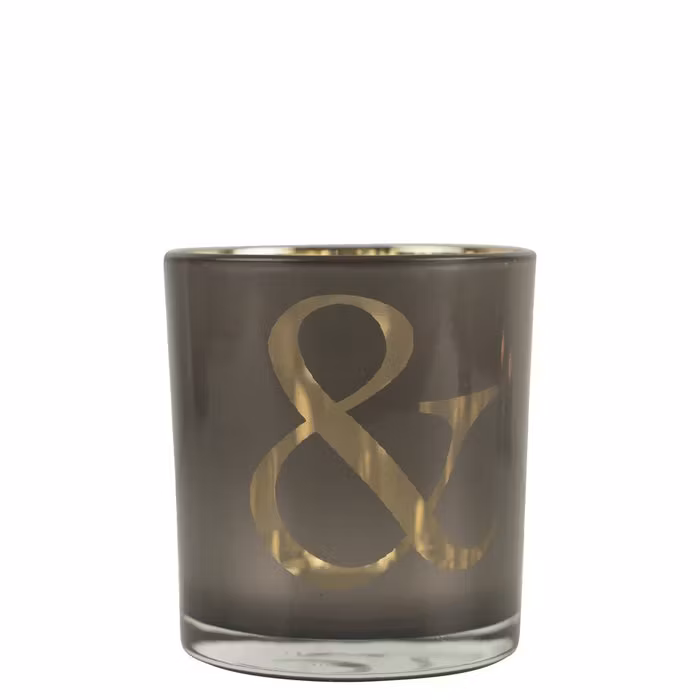 Den minsta av de tre ljuslyktorna med insida i guld och brun/lila utsida med ett fint &-tecken på.Stl: 8 x 7 cmPris: 79:-