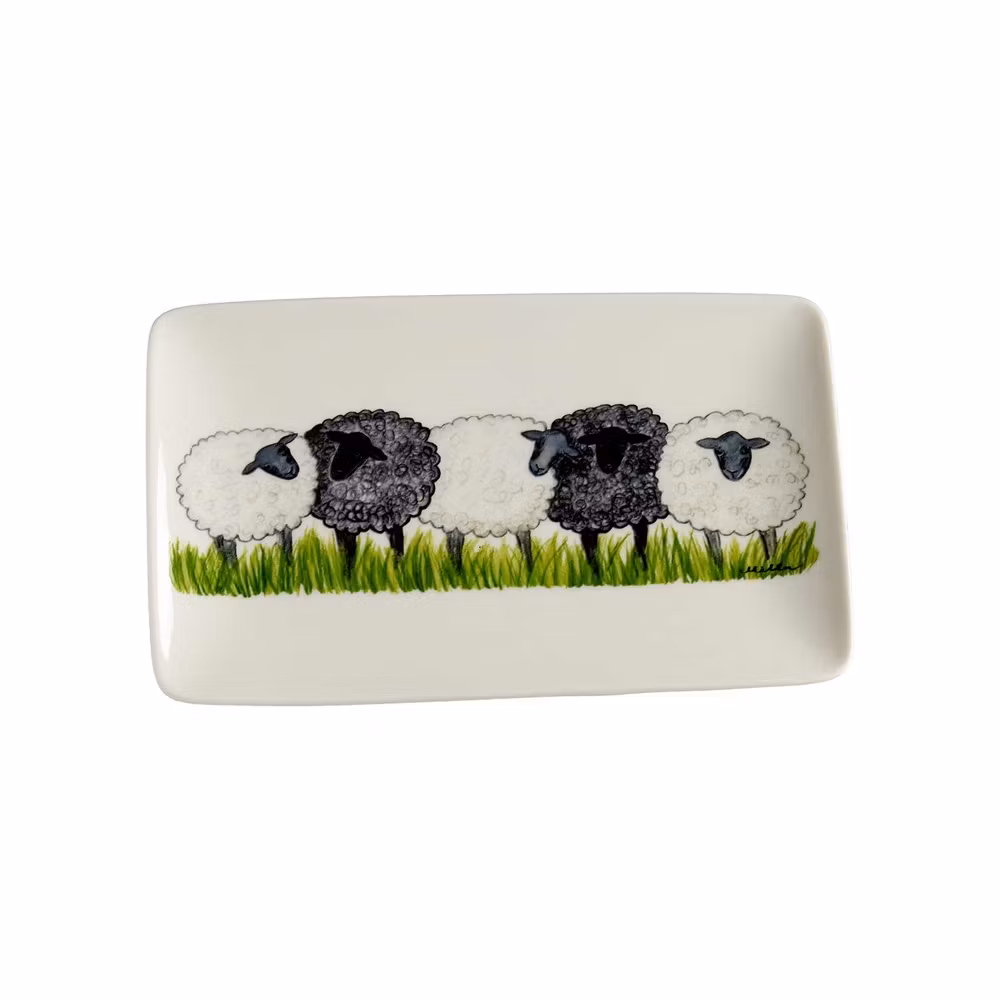 Med motiv av får på rad blir denna assiett en stilren och rustik detalj.