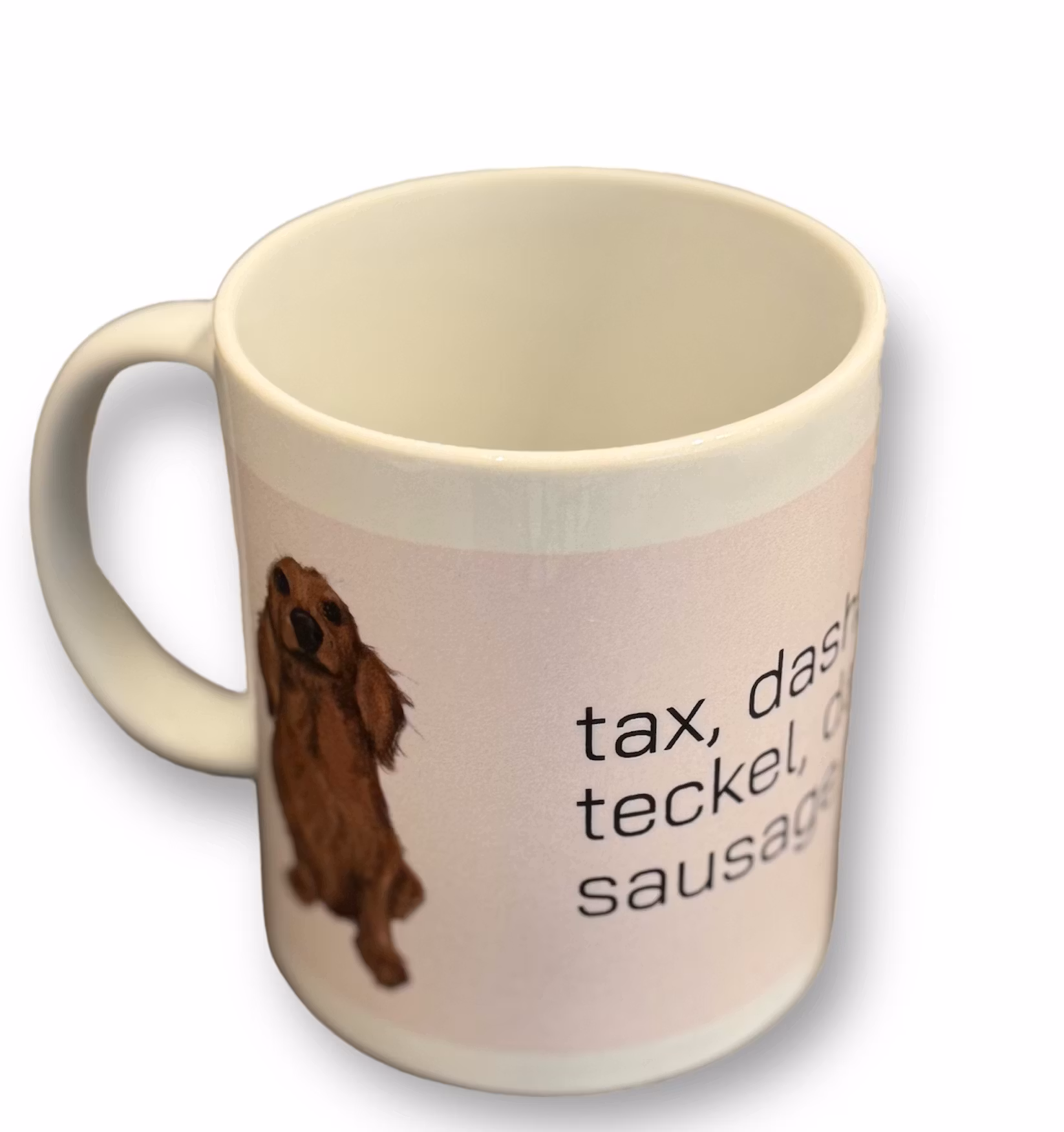 Njut av din favoritdryck med en stilren och detaljrik illustration av långhårig tax.