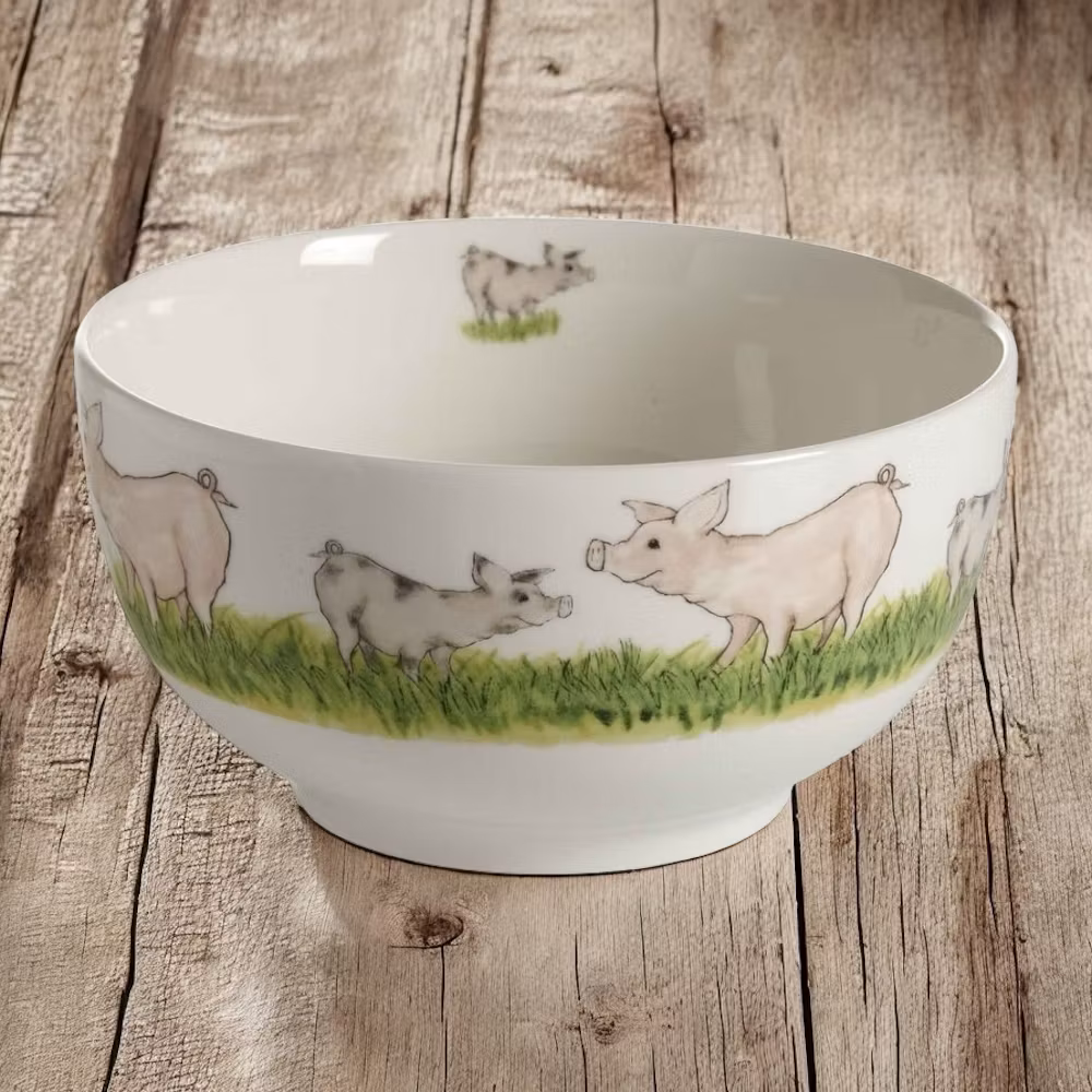 Med sitt glada motiv av grisar som njuter av grönskande ängar