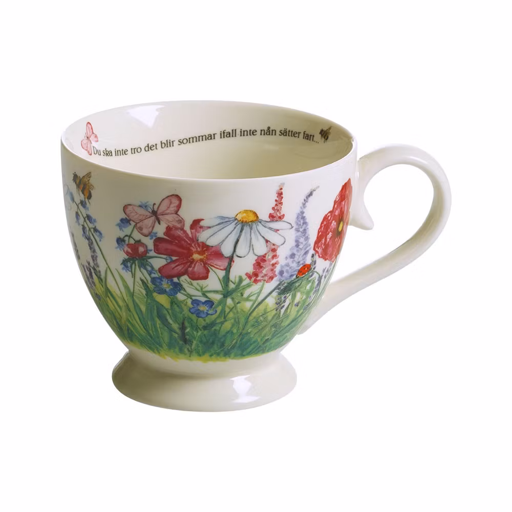 Stor och härlig – en tekopp med sommarkänsla.Sommarmotiv och en rymlig form gör denna kopp perfekt för långa fikastunder.