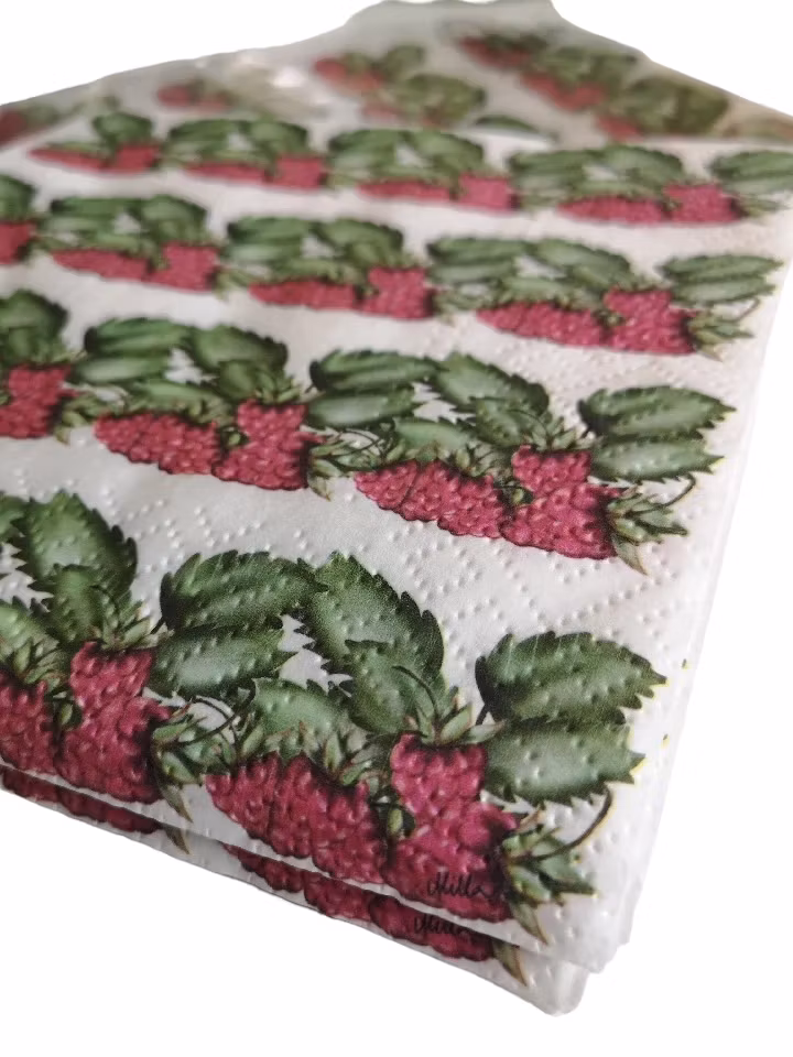 Dessa servetter, prydda med ett vackert hallonmotiv,