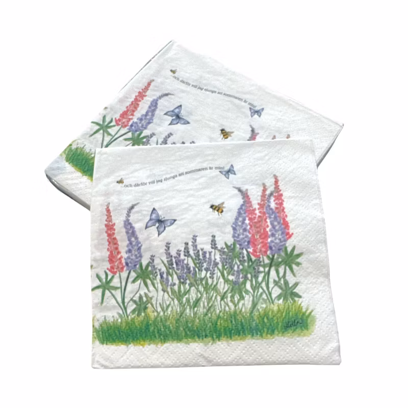 Servetter med sommarmotiv och texten"...och därför vill jag sjunga..."