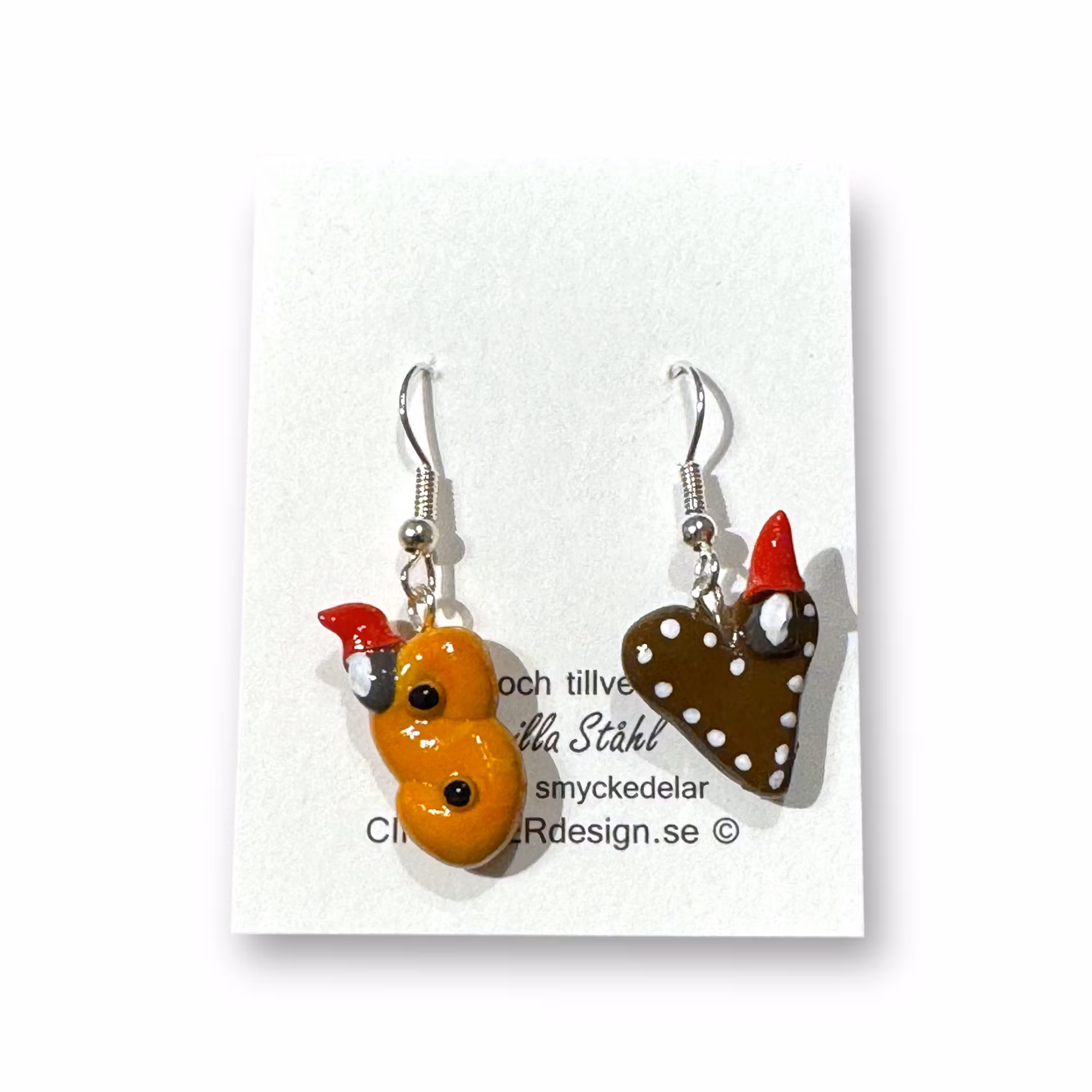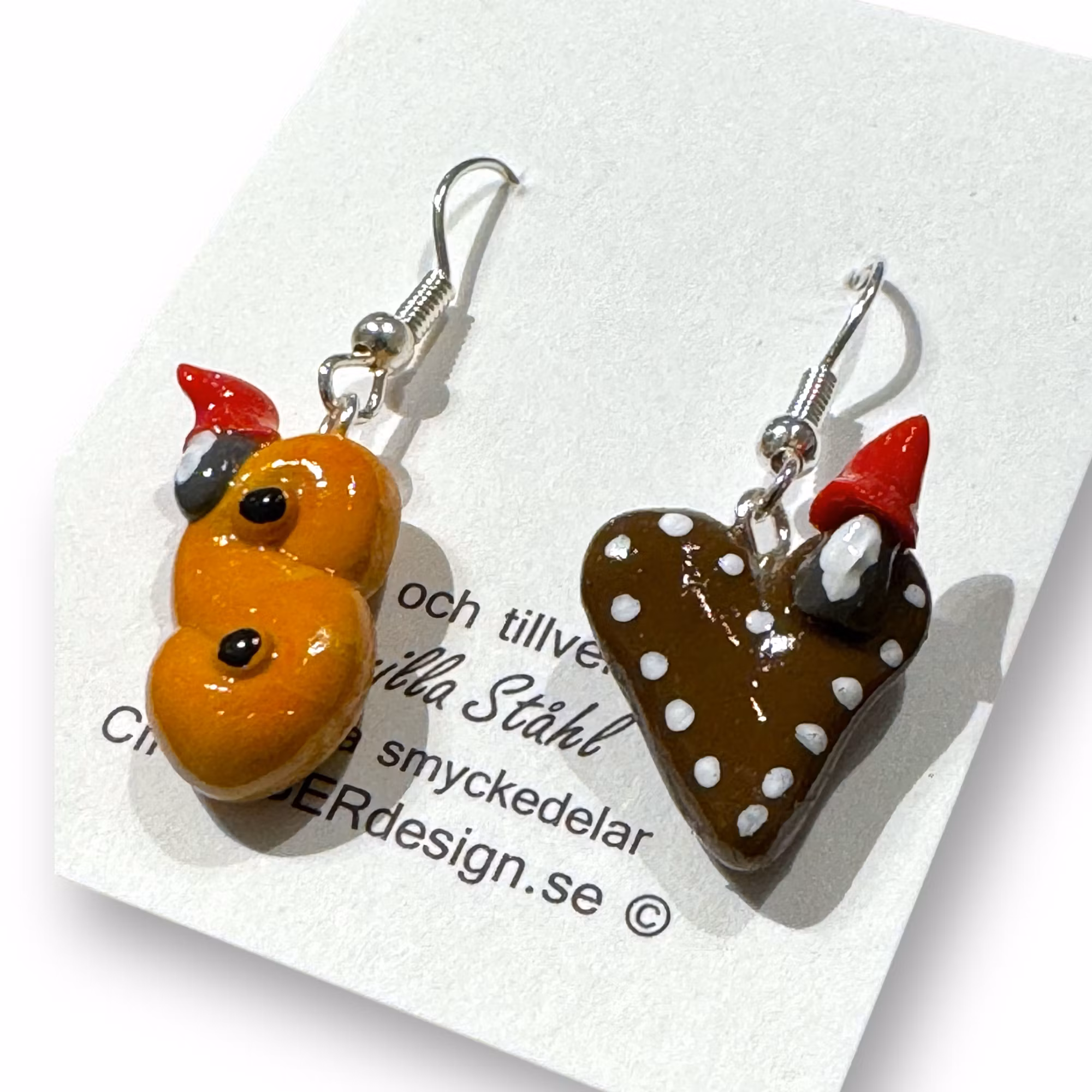 En lussebulle till ena örat och en pepparkaka till det andra. Dessa gör jag för hand så de blir lite olika i utseende och storlek.EGEN DESIGNStorlek: ca: 2-1 cm