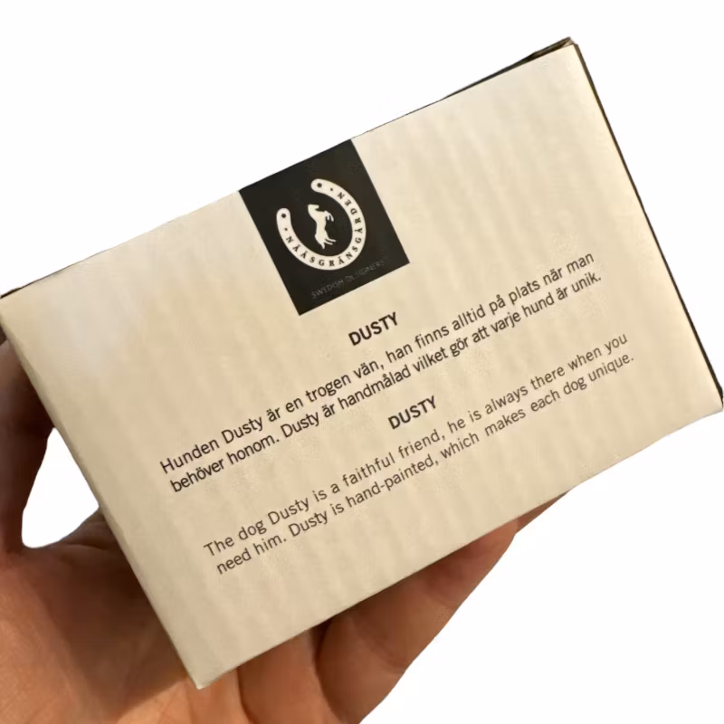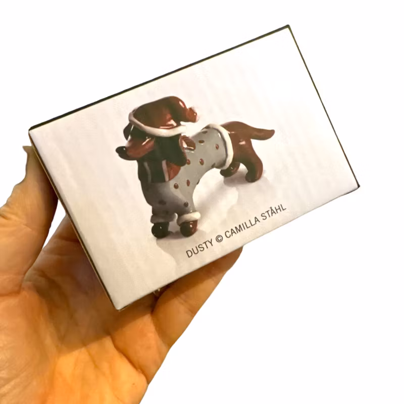 Juliga taxen Dusty med tomteluva, tröja och halsduk. Kommer i fin presentförpackning.MIN DESIGN för NääsgränsgårdenStl: 9,5 x 2 x 4,5 cmPris: 98:-