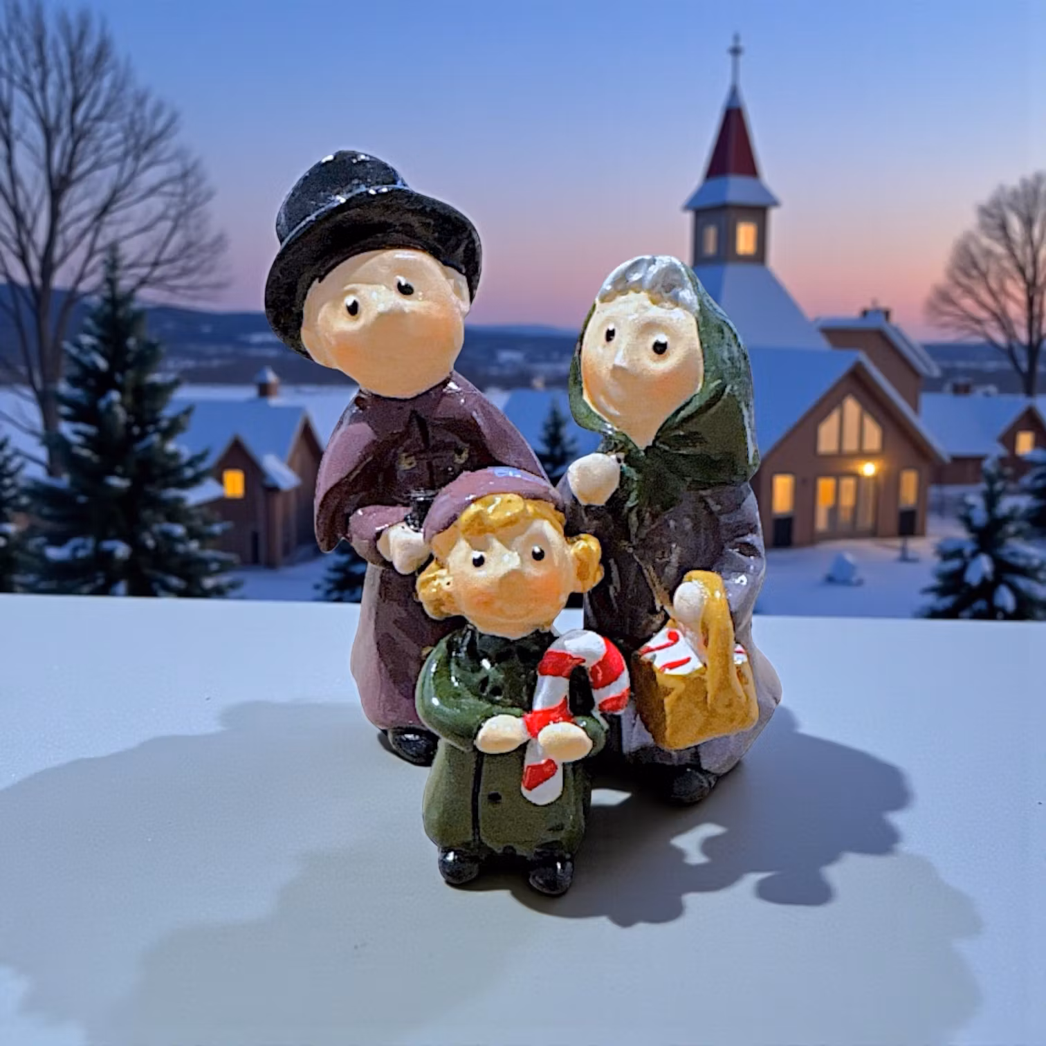 Förvandla din julby med detta charmiga kyrkfolk – en söt liten familj bestående av mor, far och lilla dottern. Figurerna är skapade i egen design av mig, Camilla, med fokus på tradition, värme och detaljer som väcker julkänslan till liv.