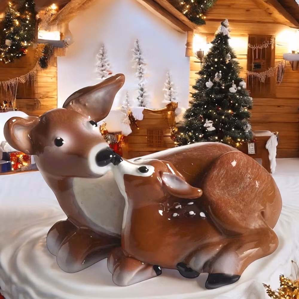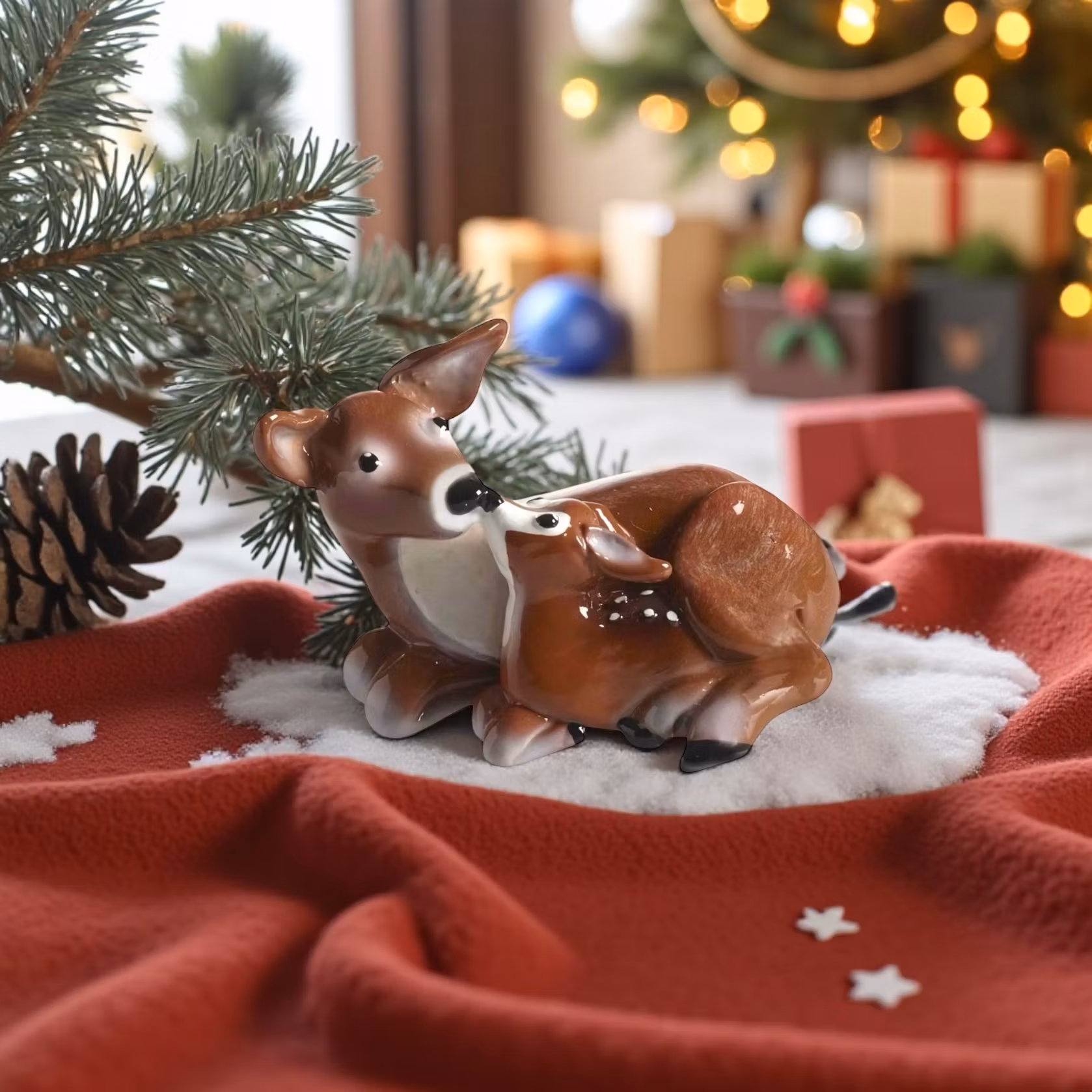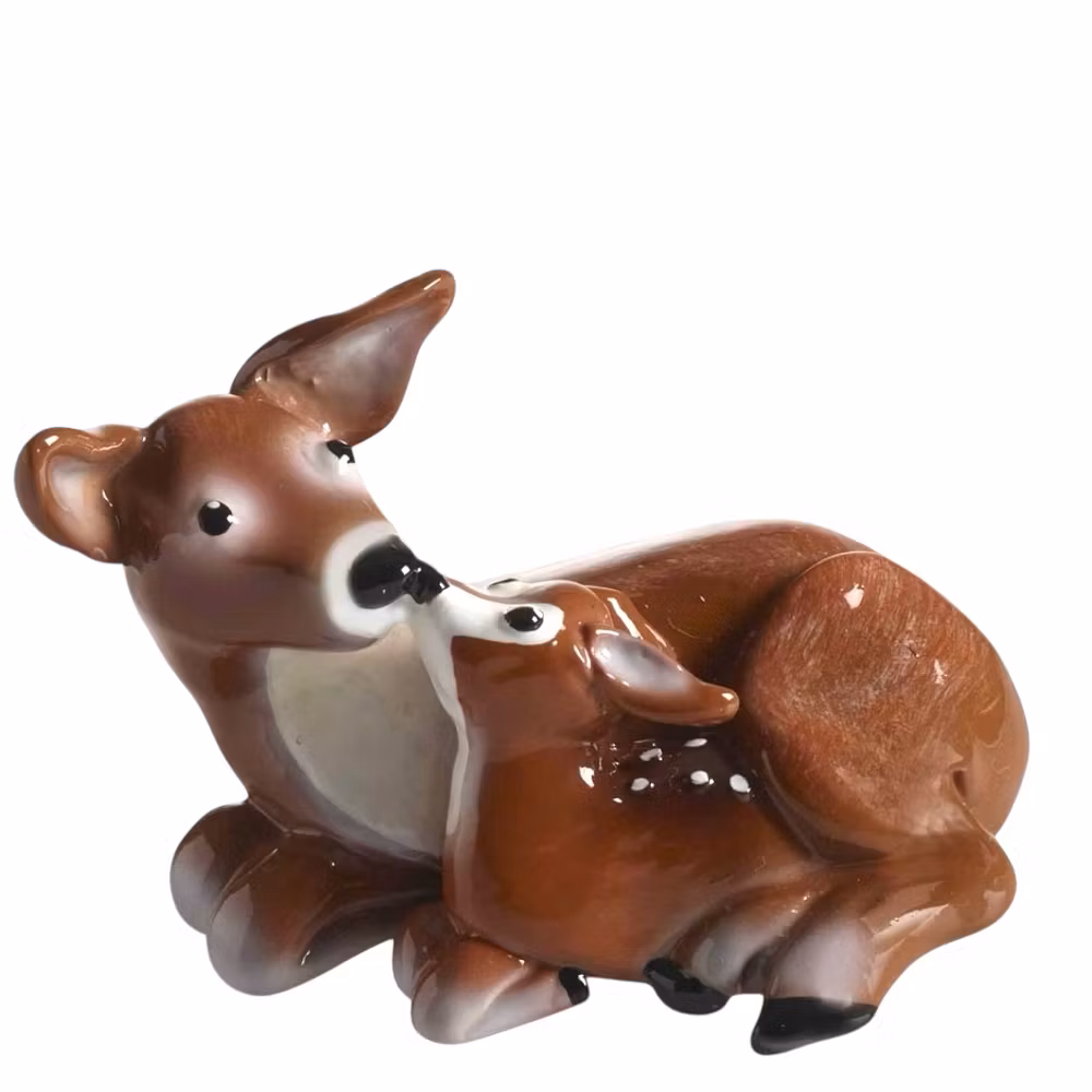 Söt rådjursfigur med mamma och kid liggandes nos mot nos. Nätt dekoration som passar året runt – extra fin till jul