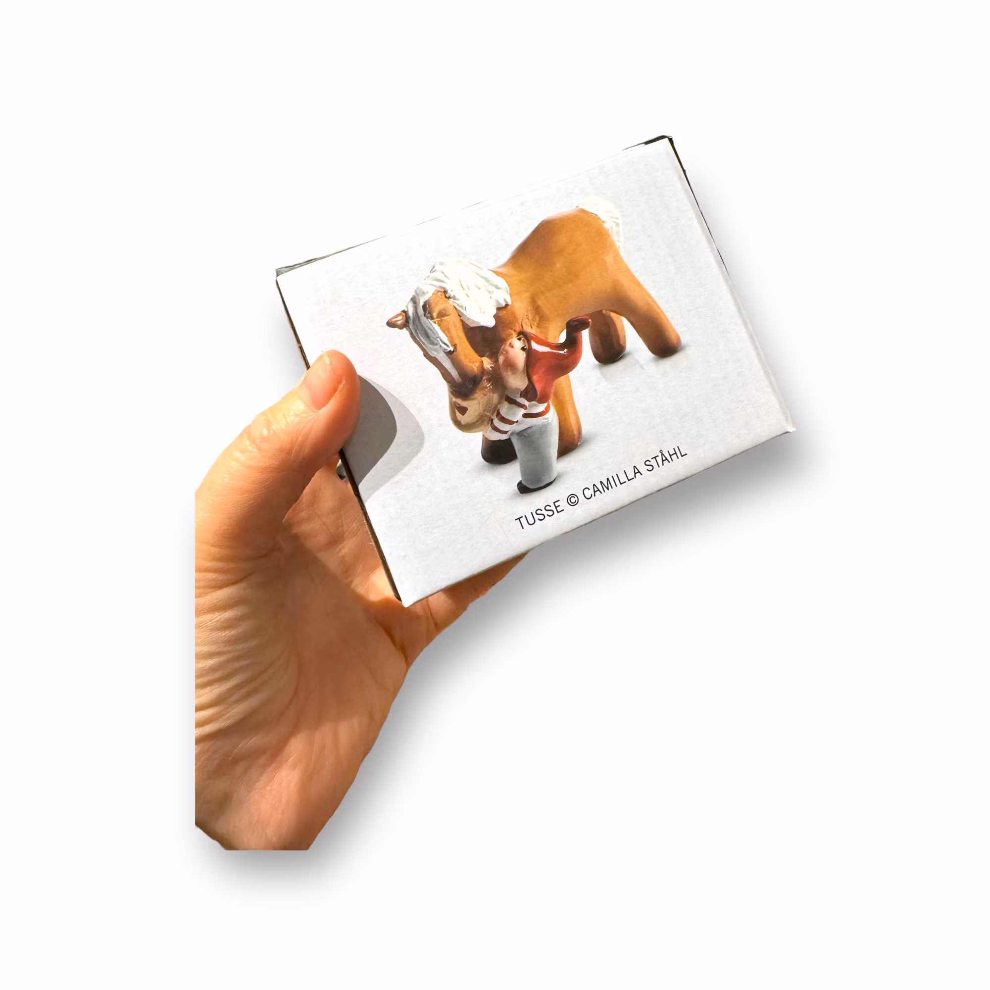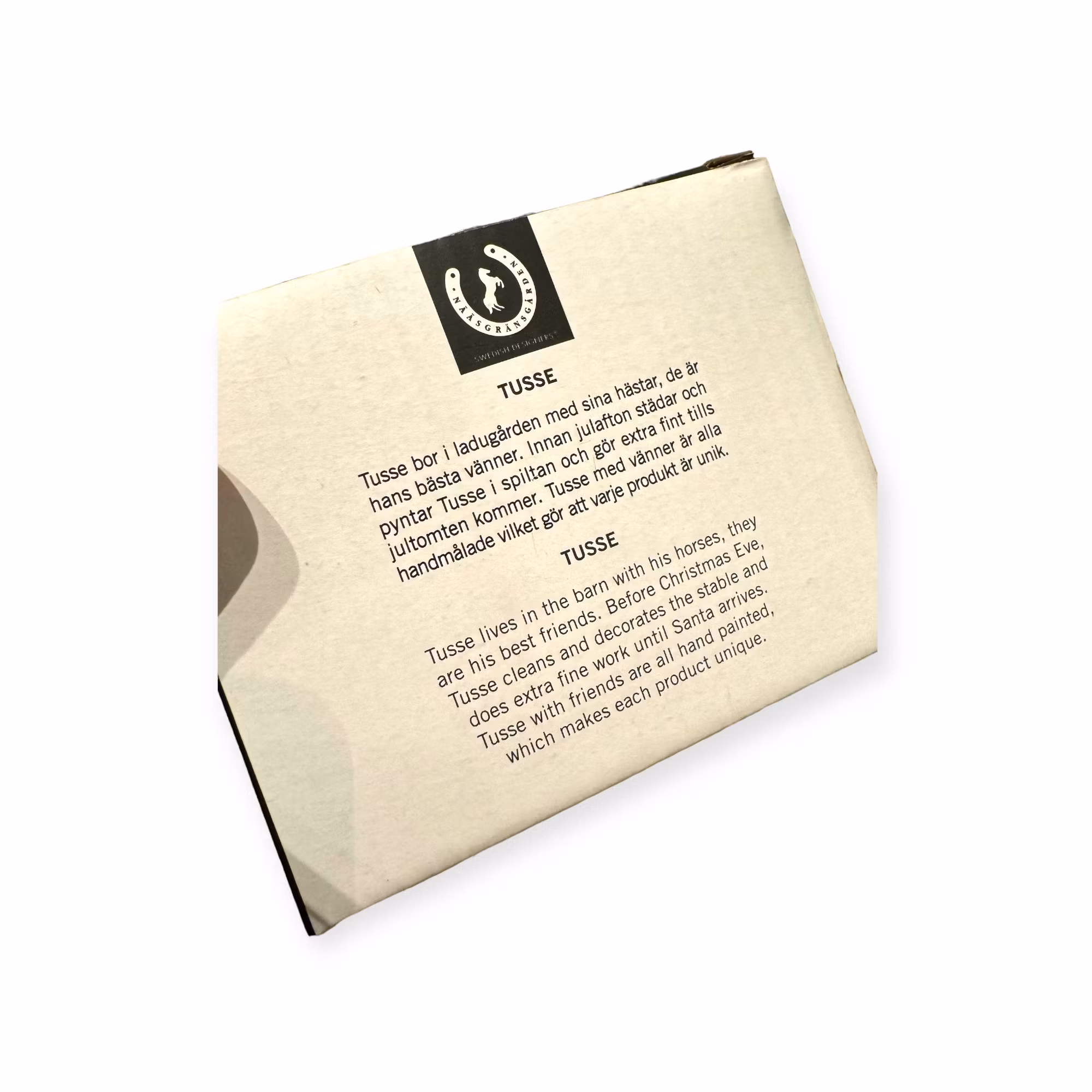 Figuren är ca 8 cm hög och ingår i serien med Tusse, formgiven av mig Camilla för Nääsgränsgården. Skapad med omsorg om detaljerna och en känsla för det stillsamma i julens berättelser. Passar perfekt som dekoration i hemmet, på hyllan eller som en del av ett samlat vinterlandskap. En figur som påminner om att de små gesterna ofta är de största.