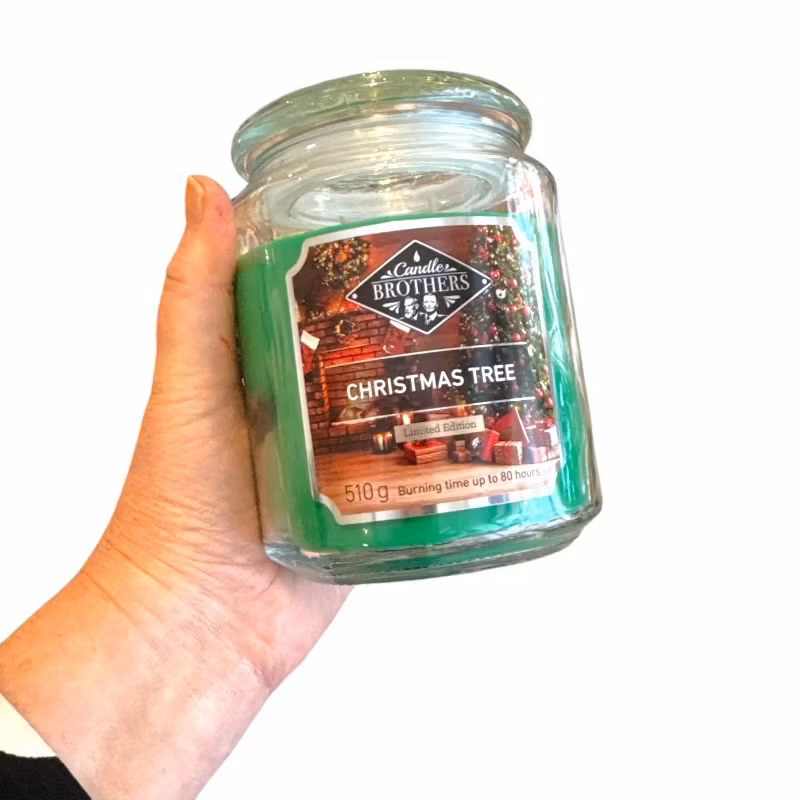 Doftljus med två vekar och med aromatisk doft av gran,