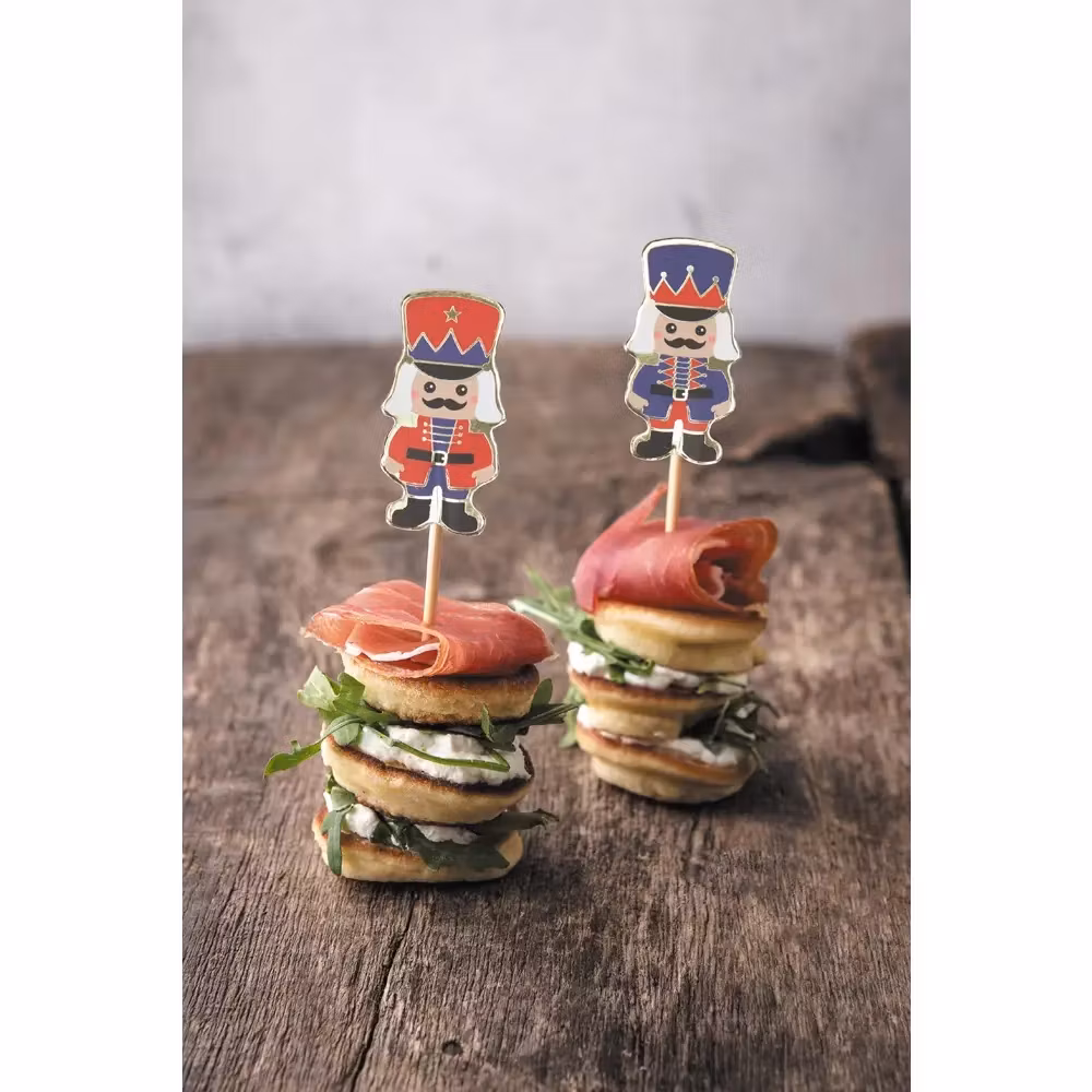 Cocktailpinnar med nötknäppare – en elegant juldetalj. Ge dina festliga tillställningar en klassisk och stämningsfull touch med dessa cocktailpinnar.