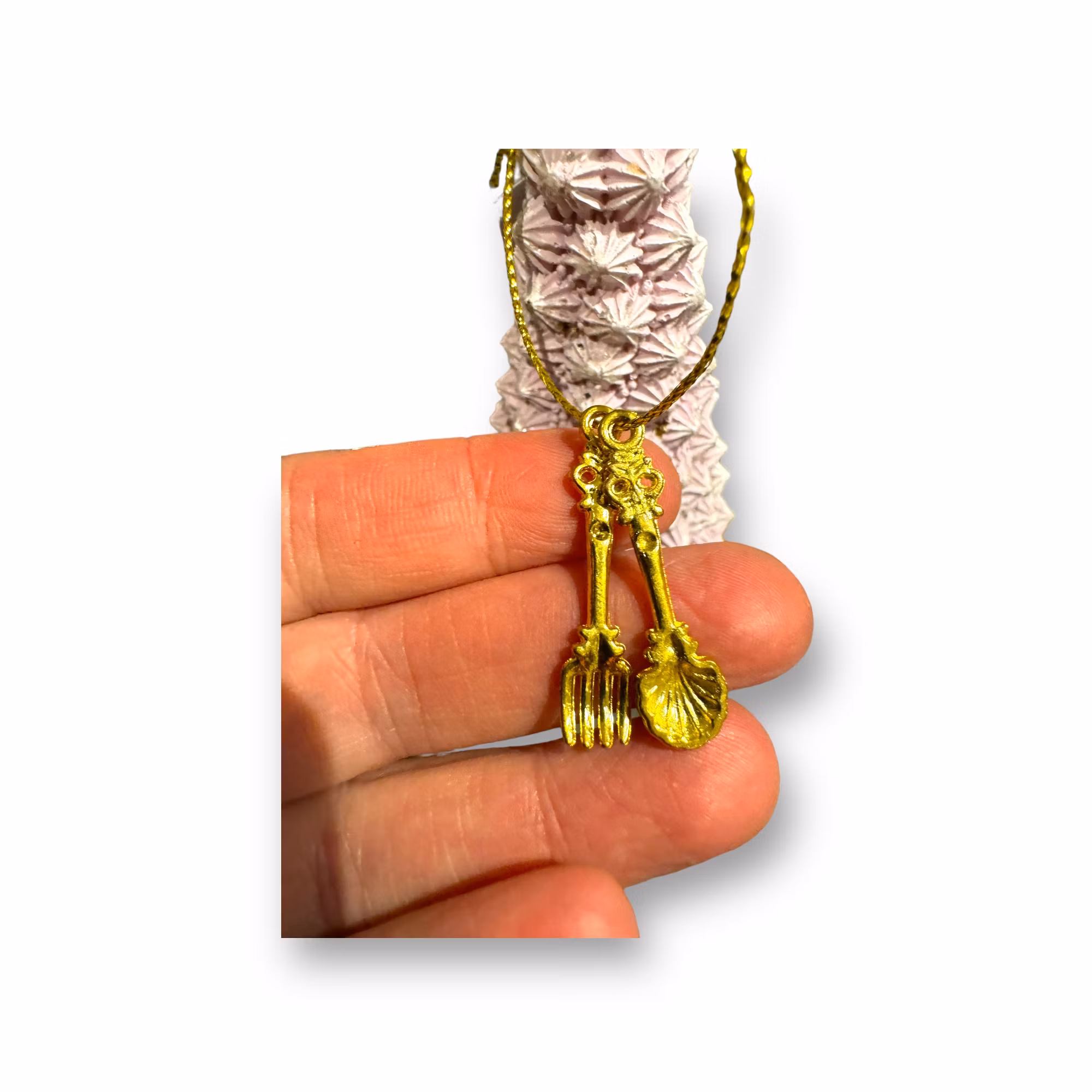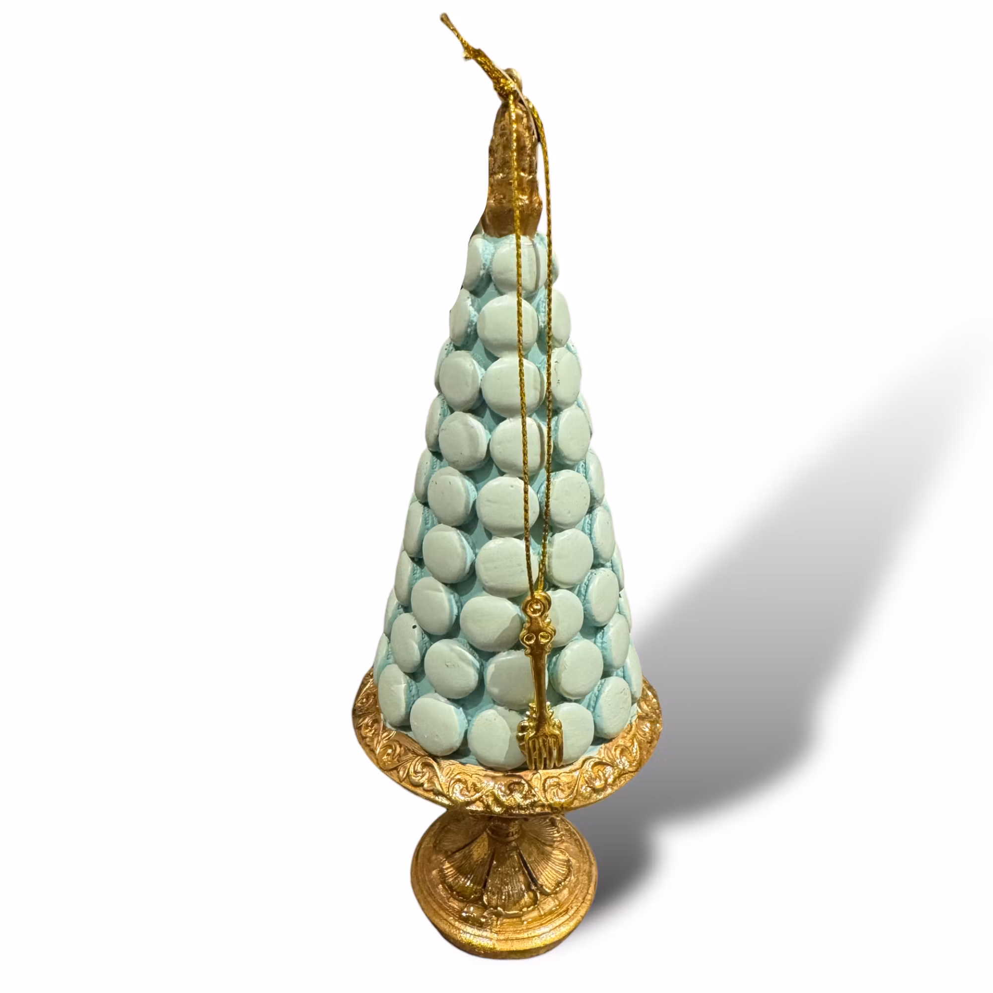 Pastellfärgad julgran med guldmedaljer som både kan stå eller hänga.