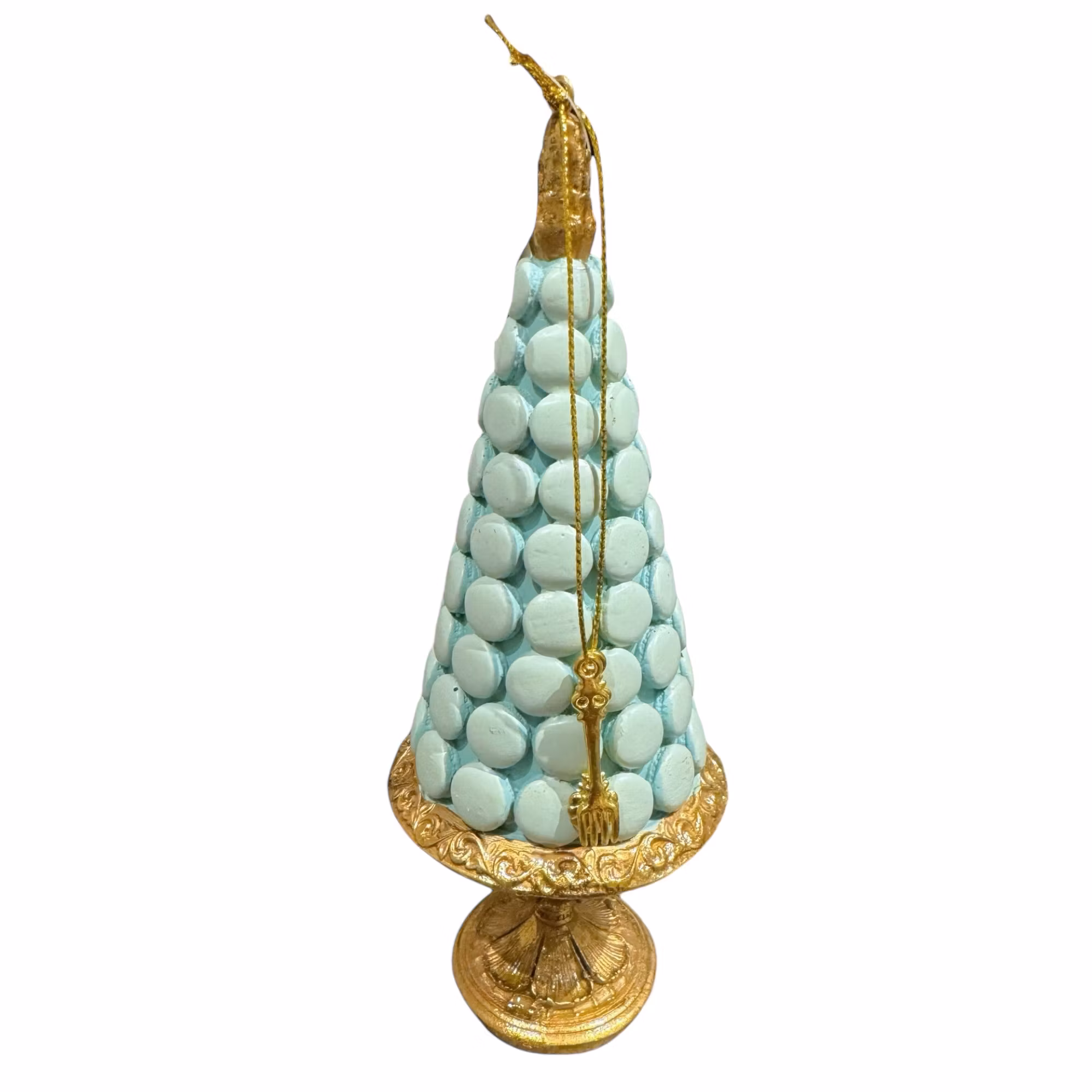 Pastellfärgad julgran med guldmedaljer som både kan stå eller hänga. Stl: 17 cm högPris:179:-