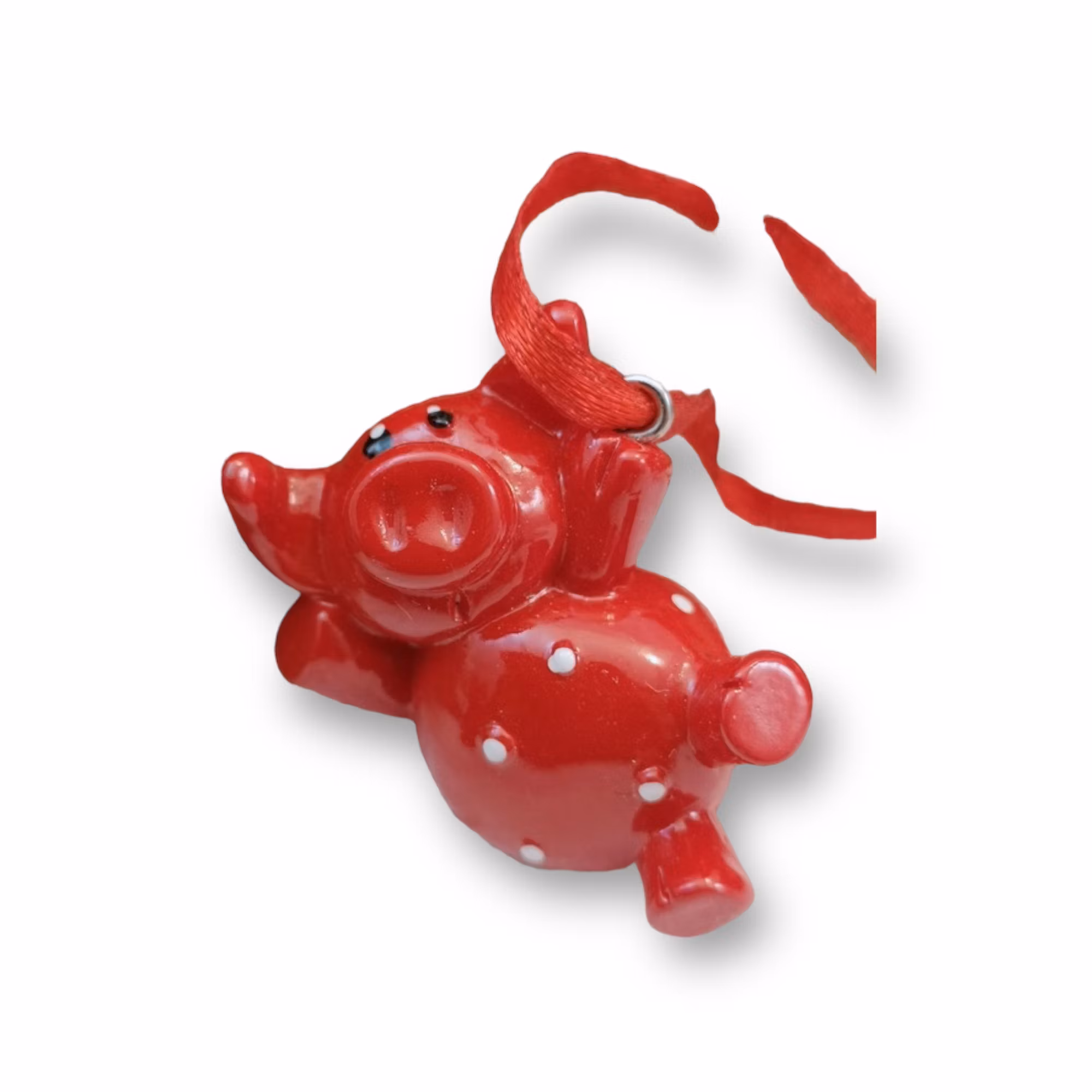 Små söta grisar att hänga i julgranen, röda med vita prickar på.