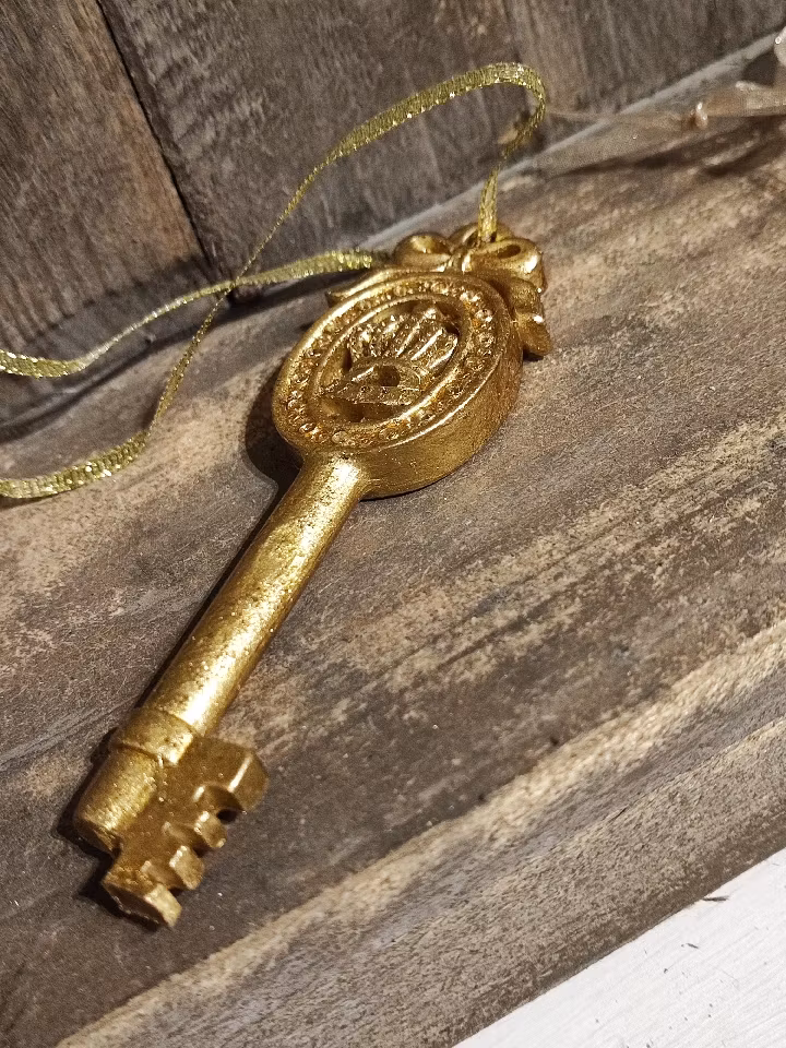 Fin nyckel i guld att hänga i julgranen.Tillverkad i polyresin med fint band för upphängning.Stl: 10 x 3 cmPris: 49:-