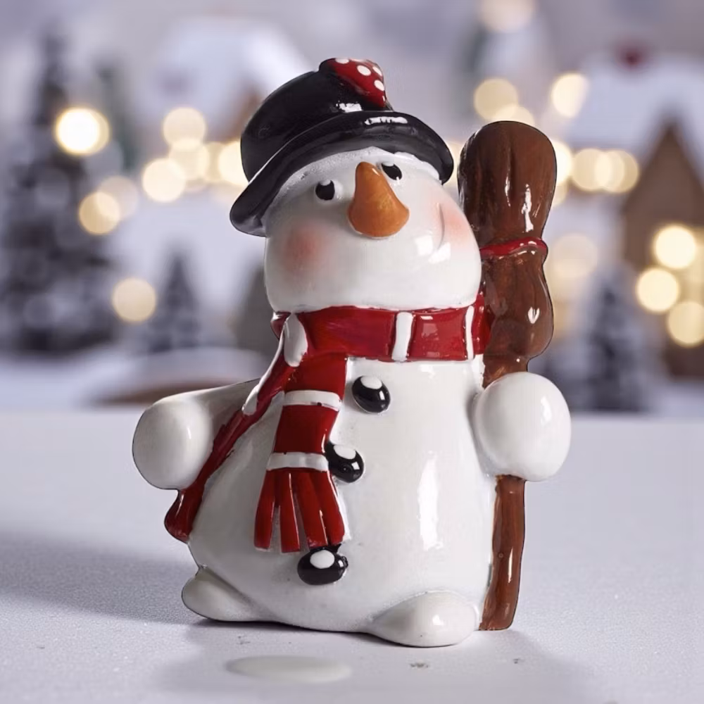 Med kvasten tryggt under armen och ett vänligt uttryck i ansiktet står Frostis redo att möta vinterdagarna. Den lilla snögubben är ca 4,5 cm hög och bär sin svarta hatt med stolthet – en figur som sprider både charm och julstämning.