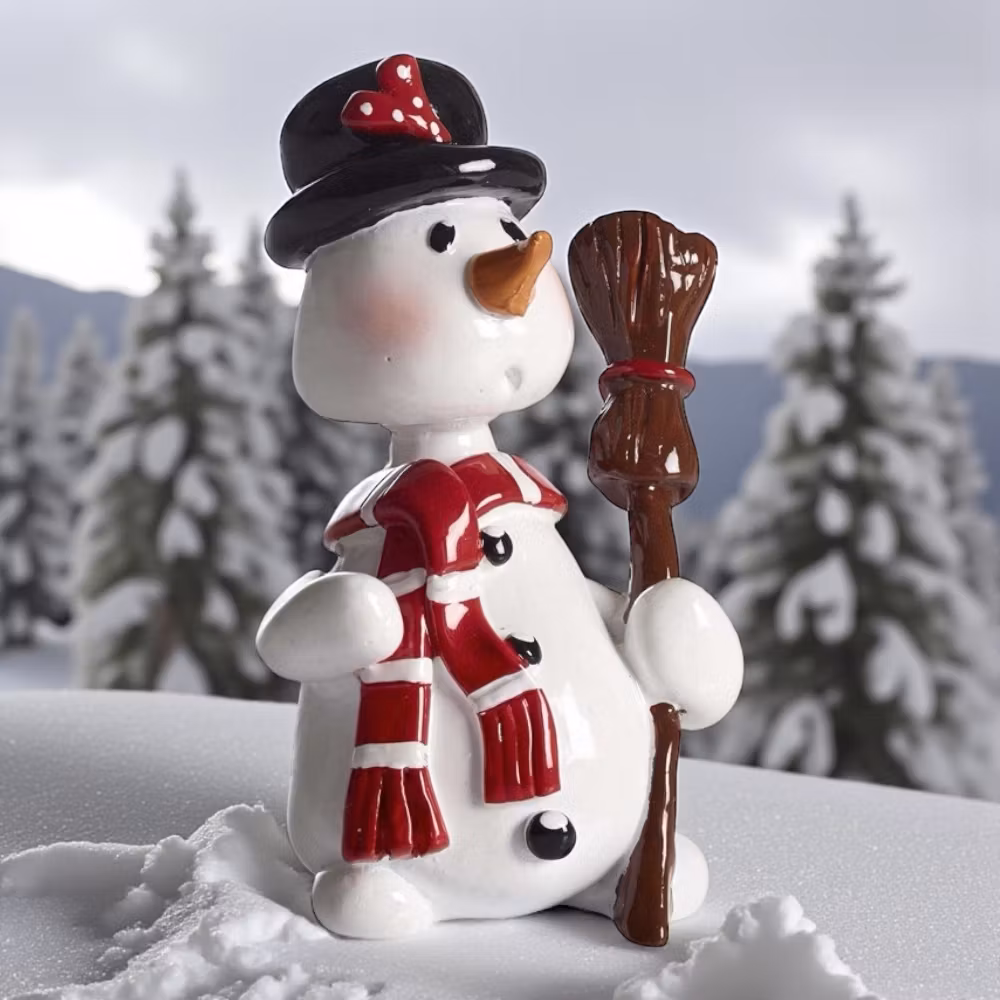 Snögubben Forstis vickar glatt på huvudet och håller kvasten stadigt under armen. En vintervän med både stil och personlighet.