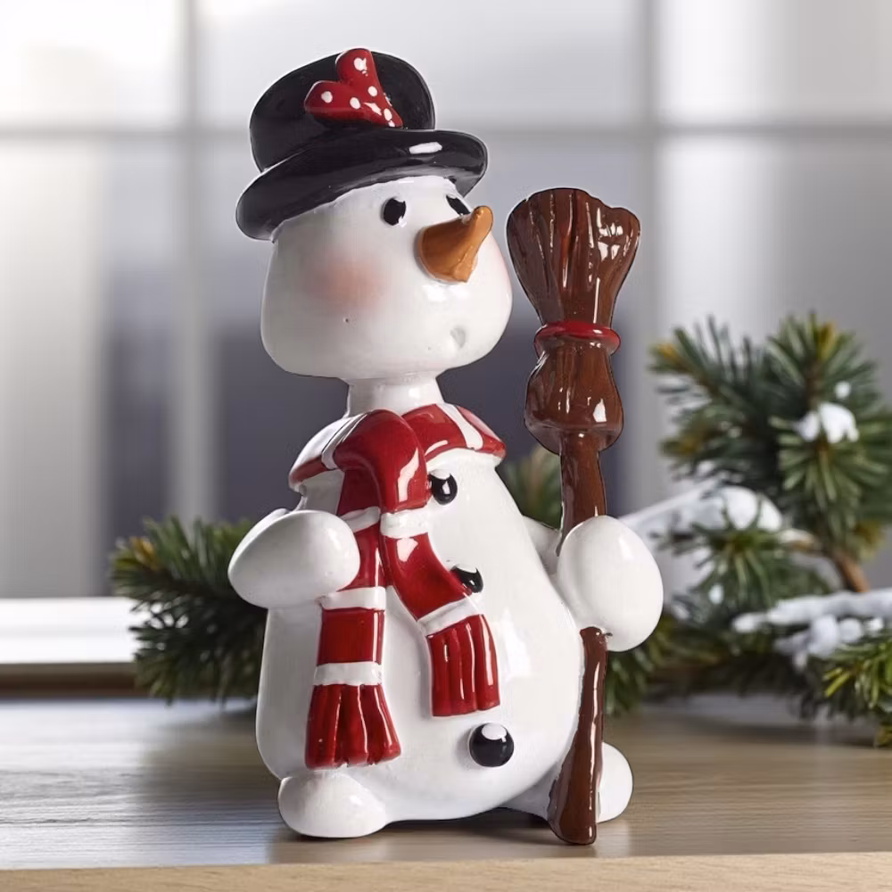 Forstis passar lika fint på fönsterbrädan som i ett vinterlandskap – en charmig snögubbe med både karaktär och rörelse som får hela rummet att le.