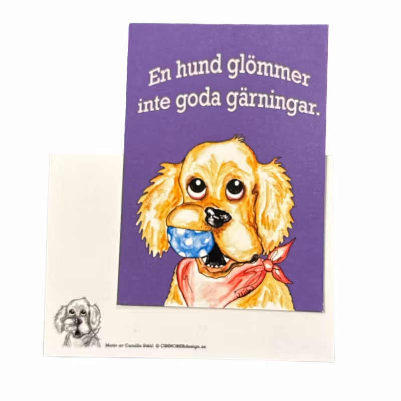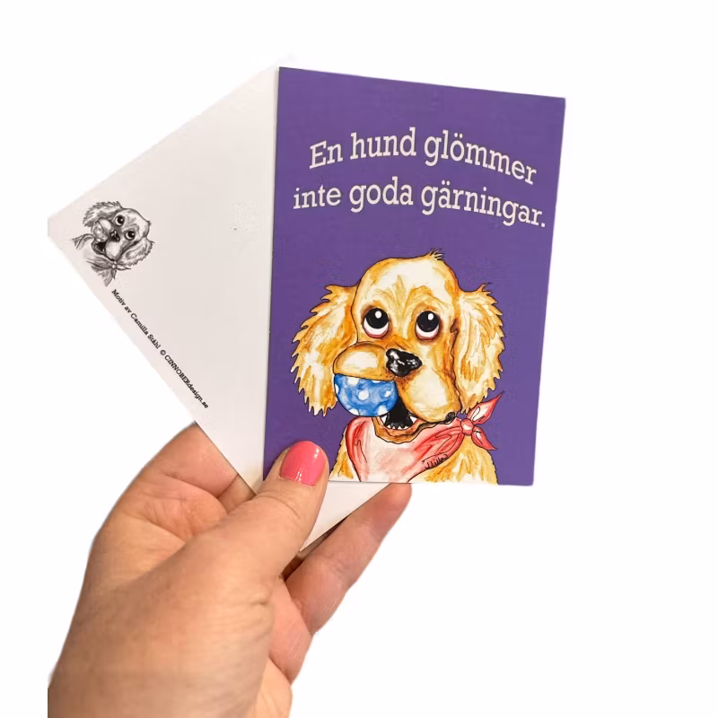 Färgglatt kort med hundar och citat!Tryckta på kraftigt papper och med fin glans, slät baksida för text.Stl: 13 x 9 cmPris 8:-/st