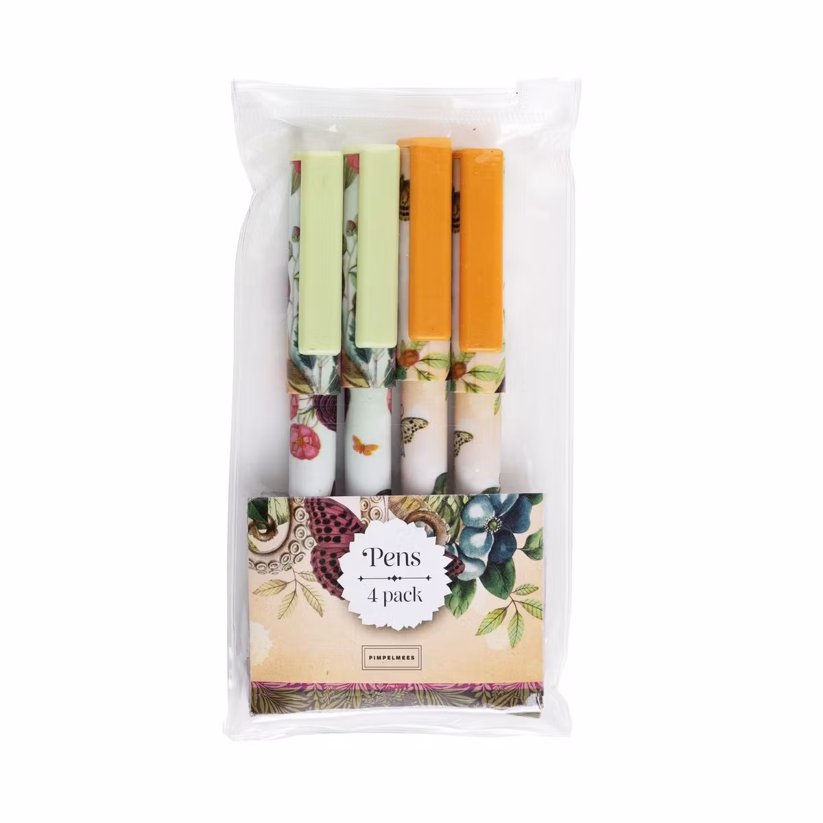 Bläckpennor med kork i fin förpackning om 4 st i dekorativa motiv. Bläcket är i blått och de är sköna och följsamma att skriva med.