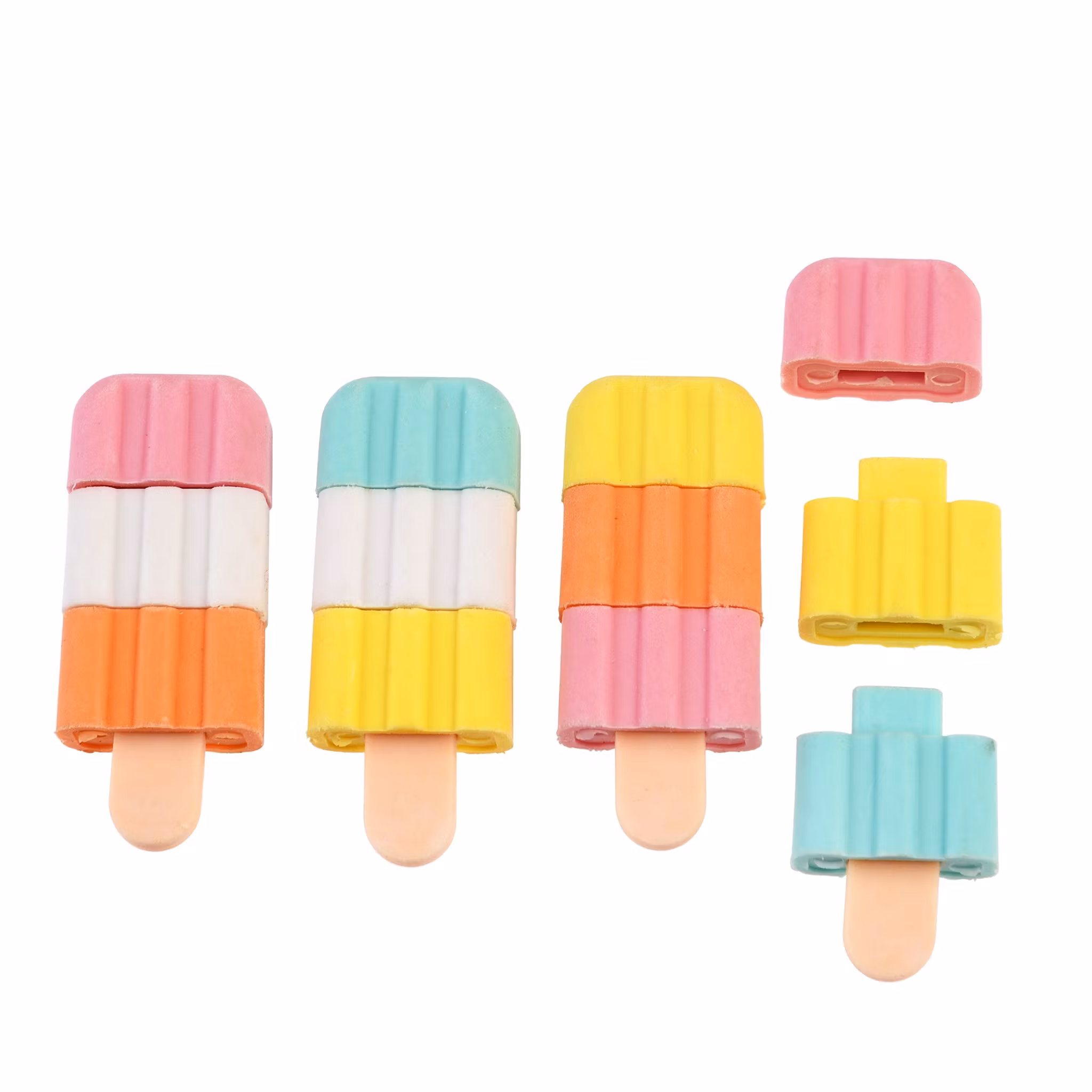 Radergummi i form av glasspinnar, 4 st i varje förpackning.