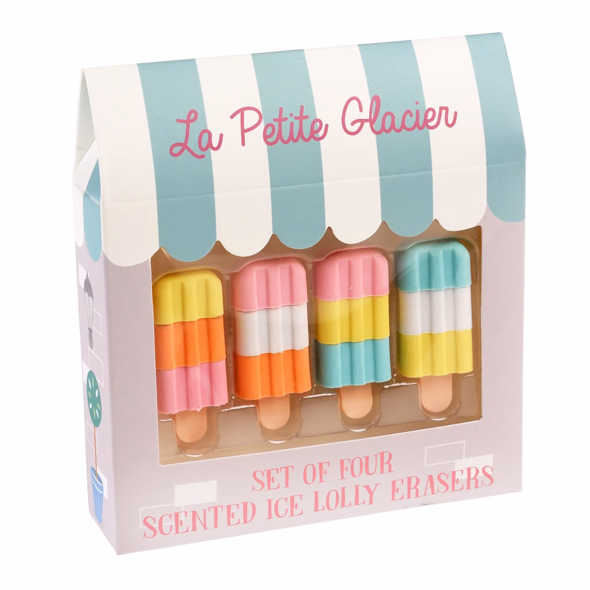 Radergummi i form av glasspinnar, 4 st i varje förpackning.Stl: 2 x 5 cm, (Förpackningen: 12 x 3 x 14 cm)Pris: 69:-