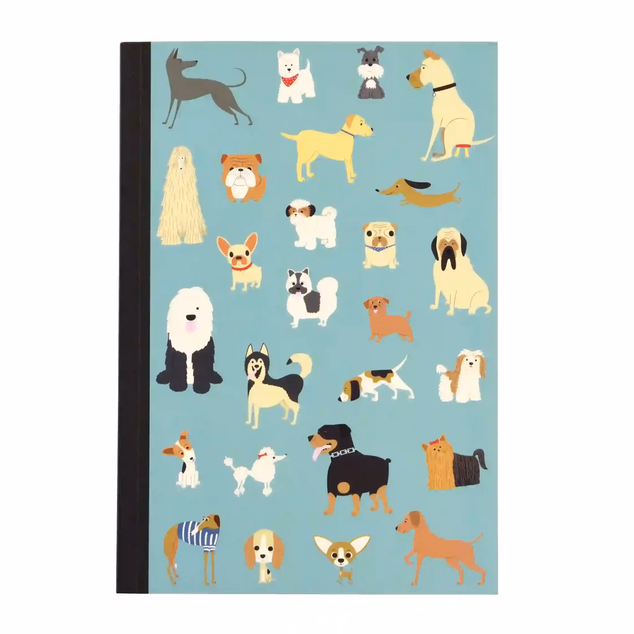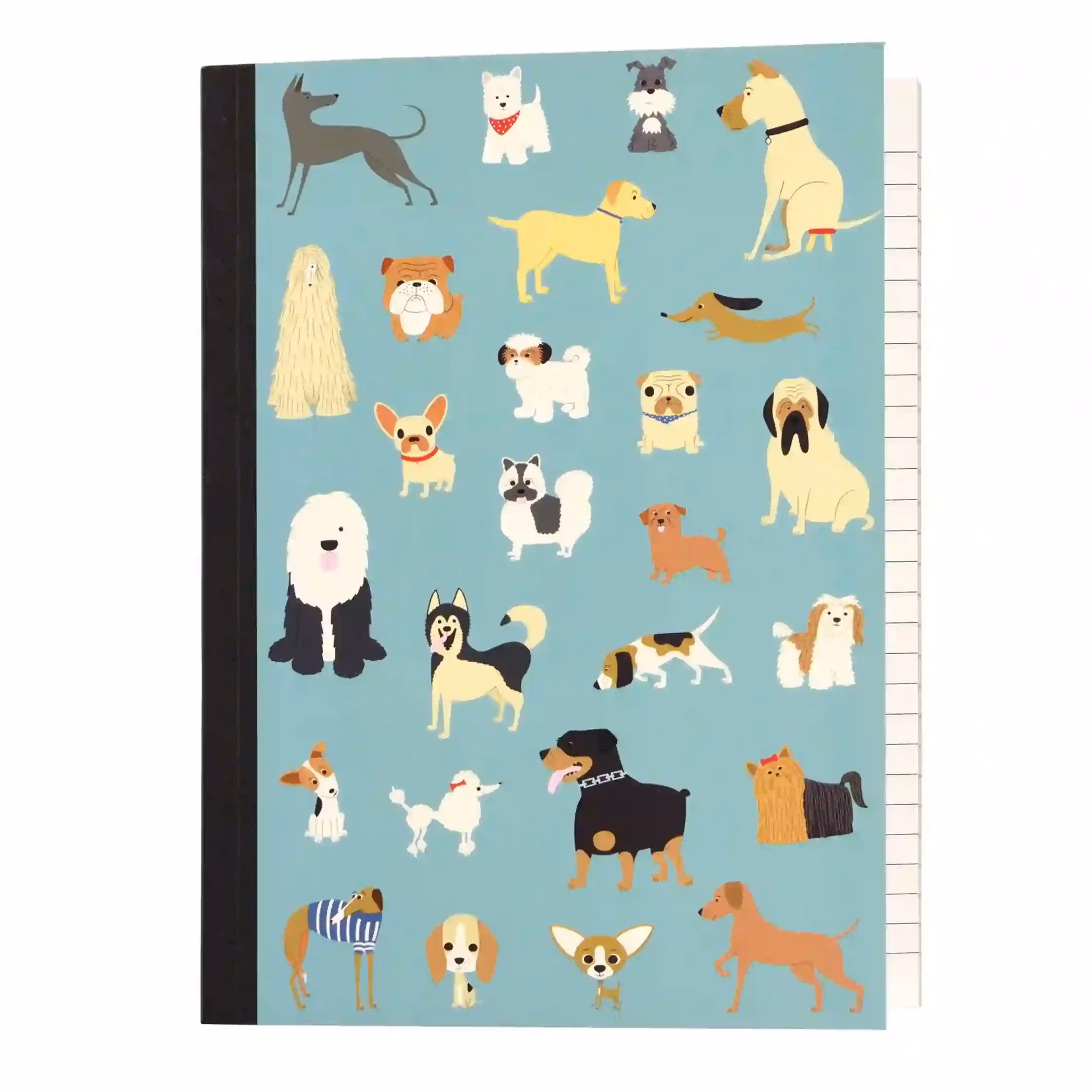 Skrivbok i A5 storlek med en massa hundar på.