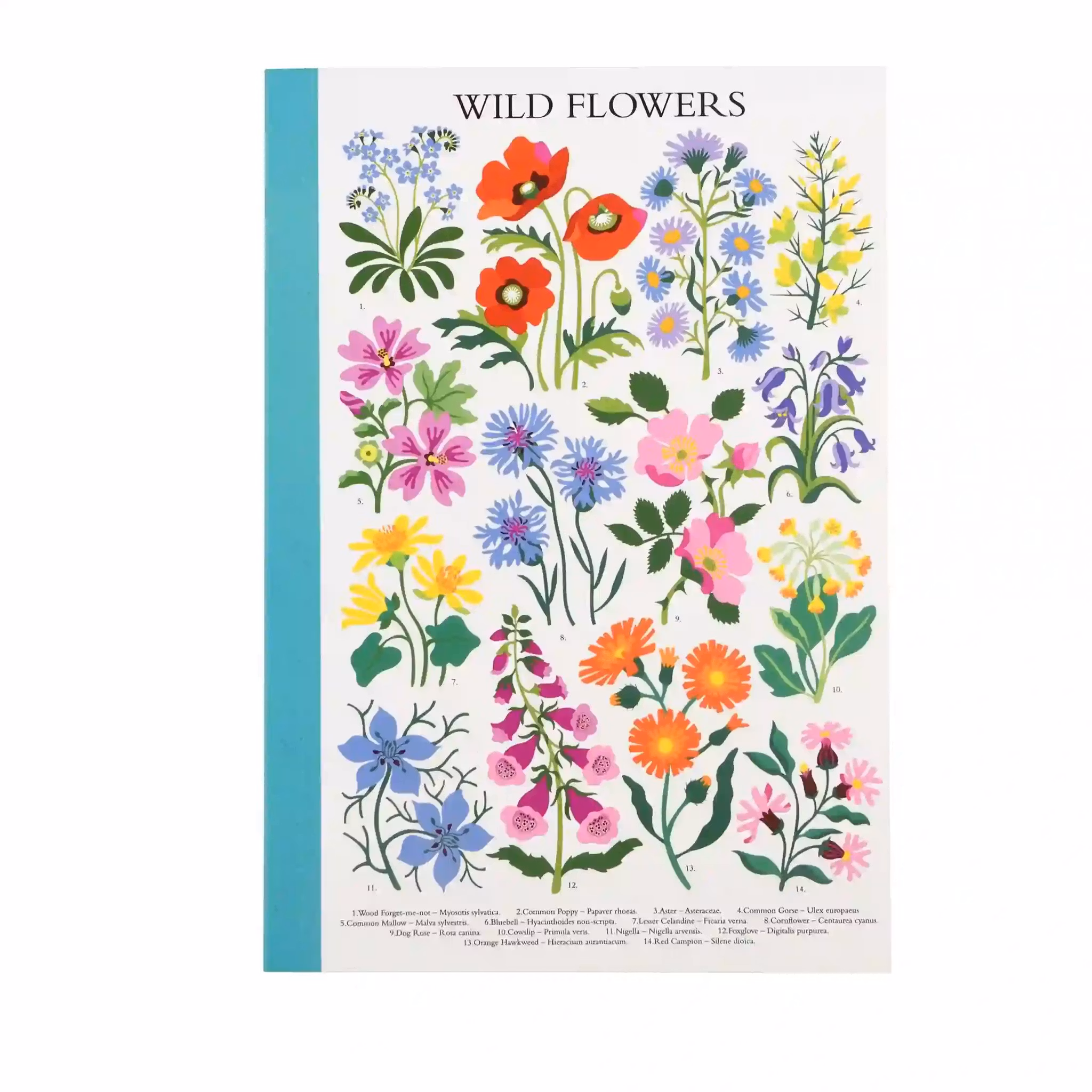 Fin anteckningsbok med limmad rygg i färgglatt blomstermotiv.