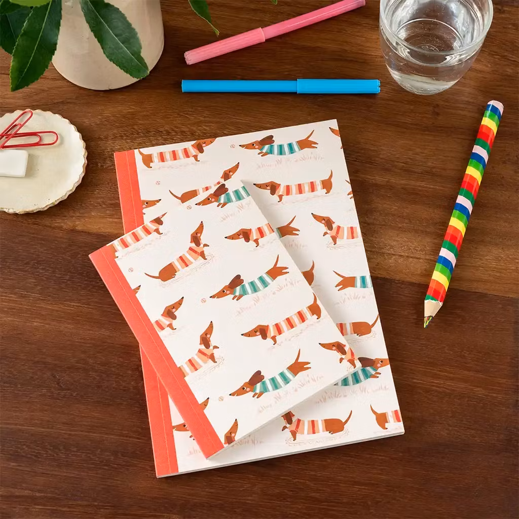 Fin anteckningsbok med limmad rygg med en massa taxar på!60 randiga sidor att skriva anteckningar på.Stl: A6 (10 x 15,5 cm)Pris: 45:-