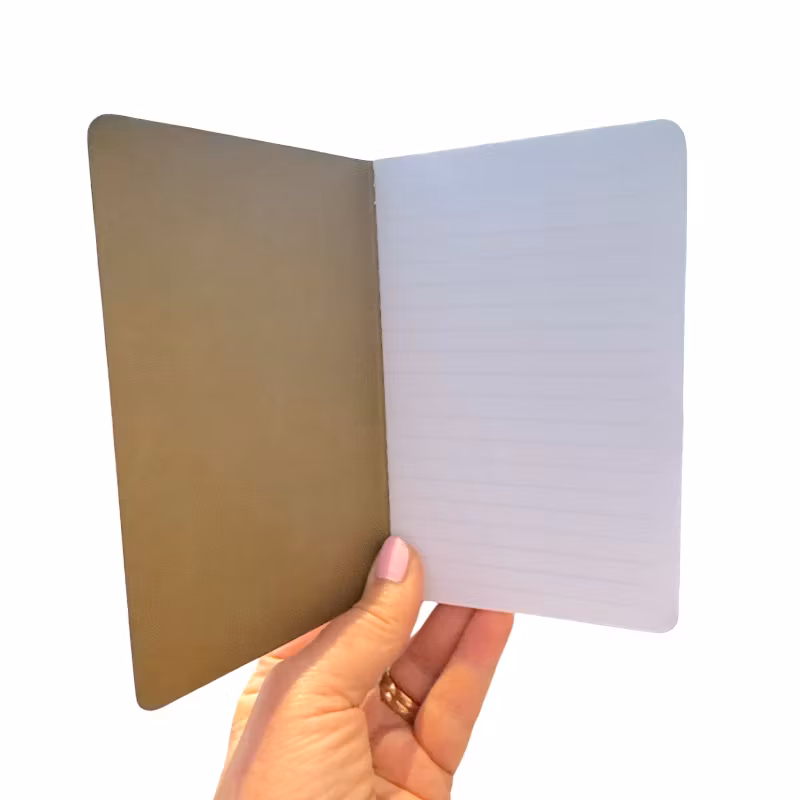 En liten och praktisk skrivbok som passar både hemma och på resan.