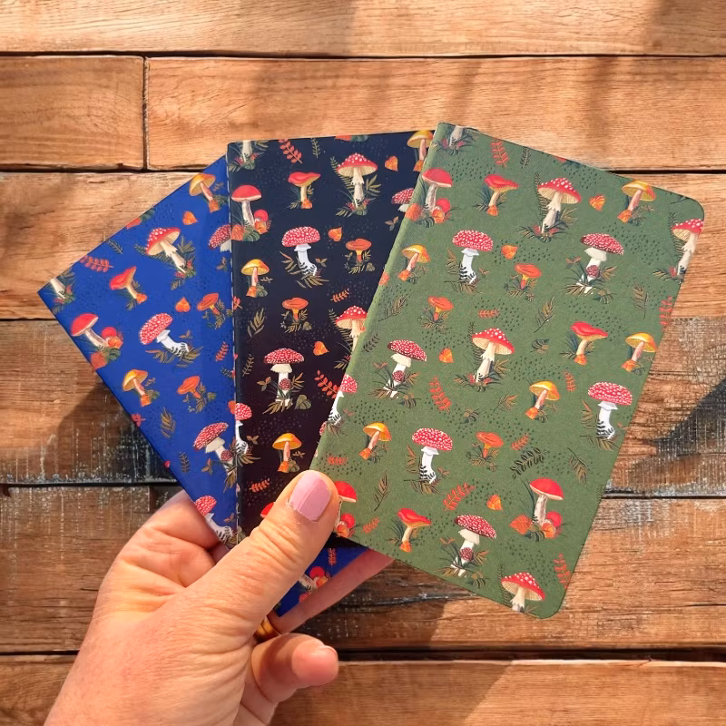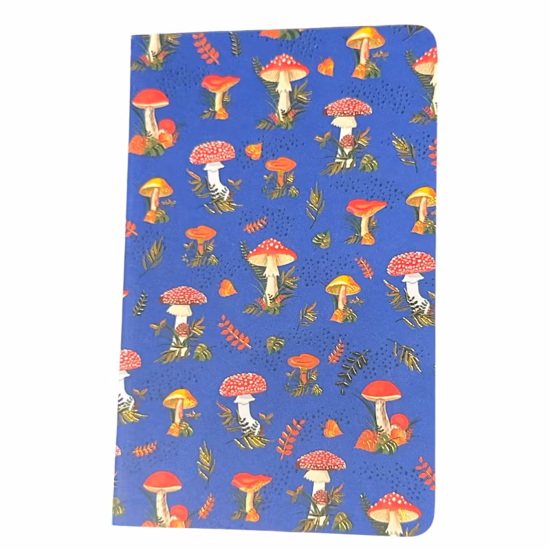 Grön skrivbok med svampmotiv. Den perfekta skrivboken för anteckningar, idéer och listor!