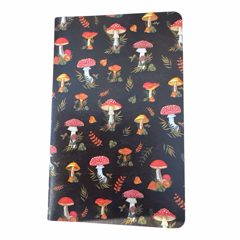 Grön skrivbok med svampmotiv. Den perfekta skrivboken för anteckningar, idéer och listor!