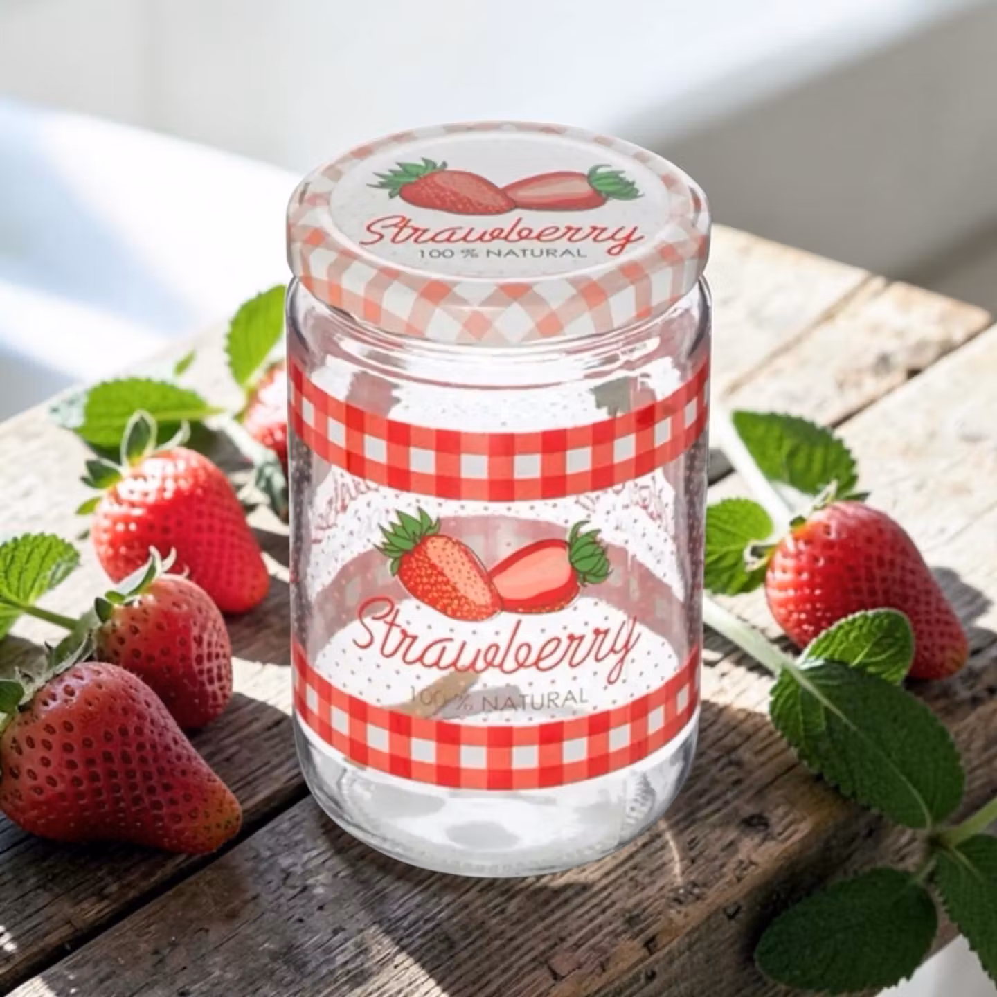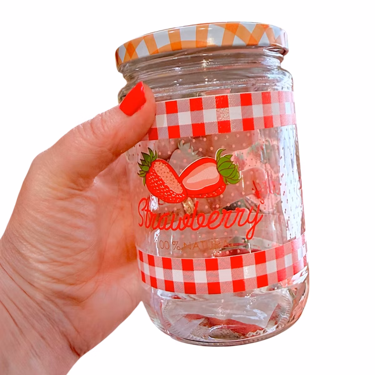 En söt och dekorativ glasburk med lock, vackert illustrerad med jordgubbsmotiv som pryder både burken och locket. Den rymmer 660 ml och är perfekt för hemgjord jordgubbssylt, marmelad, chutney, inläggningar eller andra köksfavoriter du vill förvara snyggt och praktiskt. Burken blir lika fin på kökshyllan som på frukostbordet och är dessutom en härlig presentidé när du vill ge bort något hemlagat. En charmig och funktionell burk som gör köksstunderna lite extra somriga.